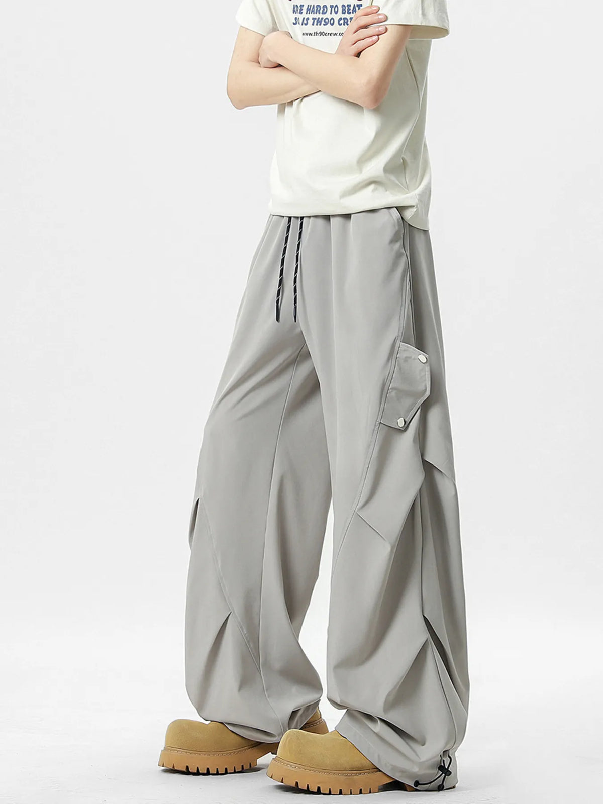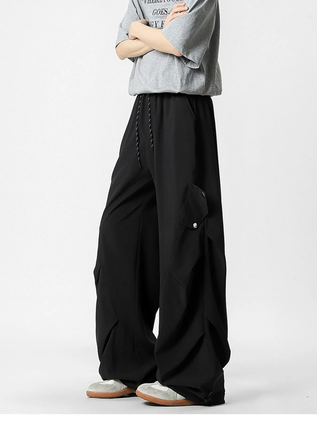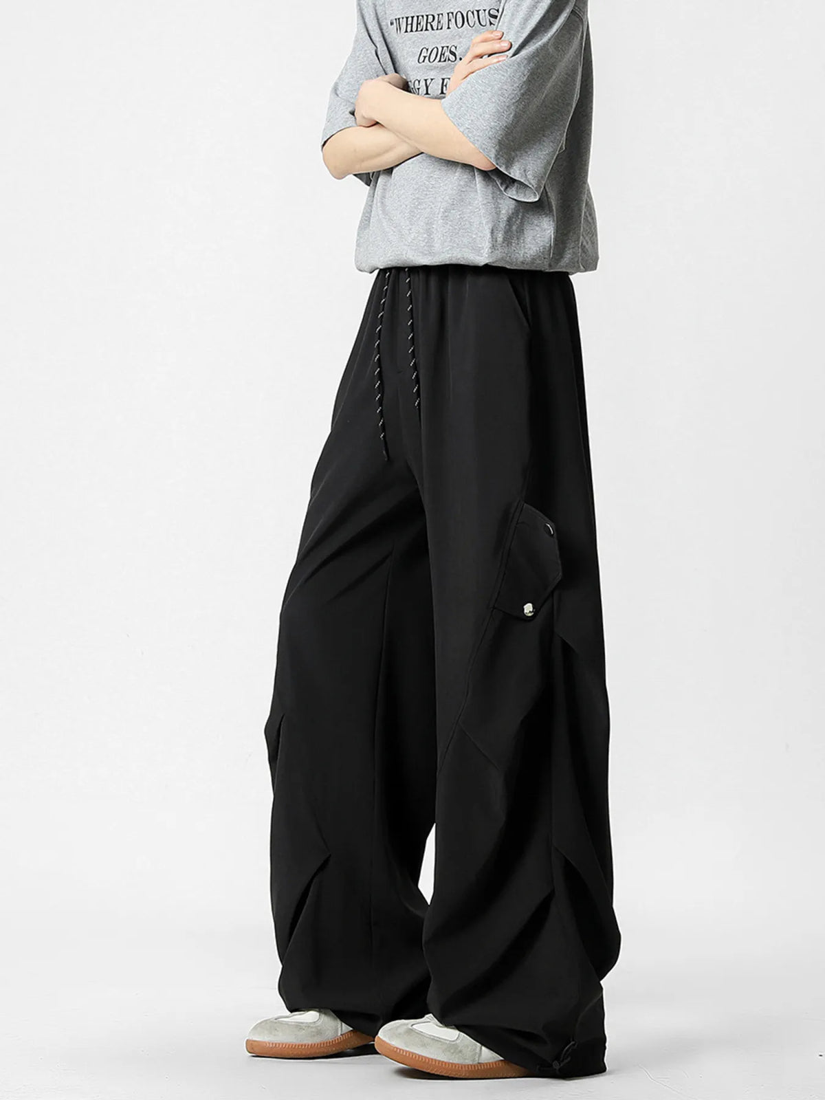 Men's Oversized Wide Leg Cargo Pants with Drawstring