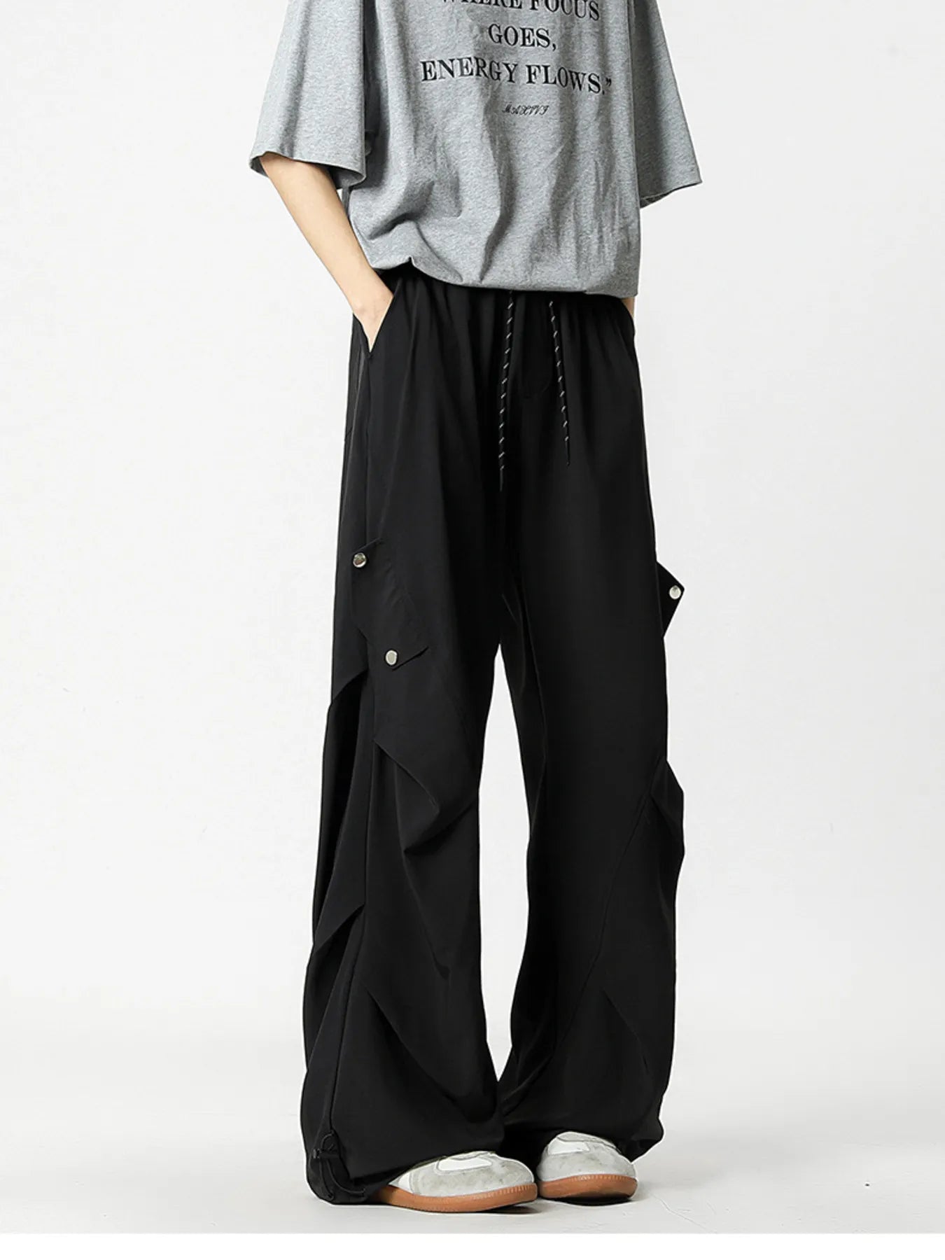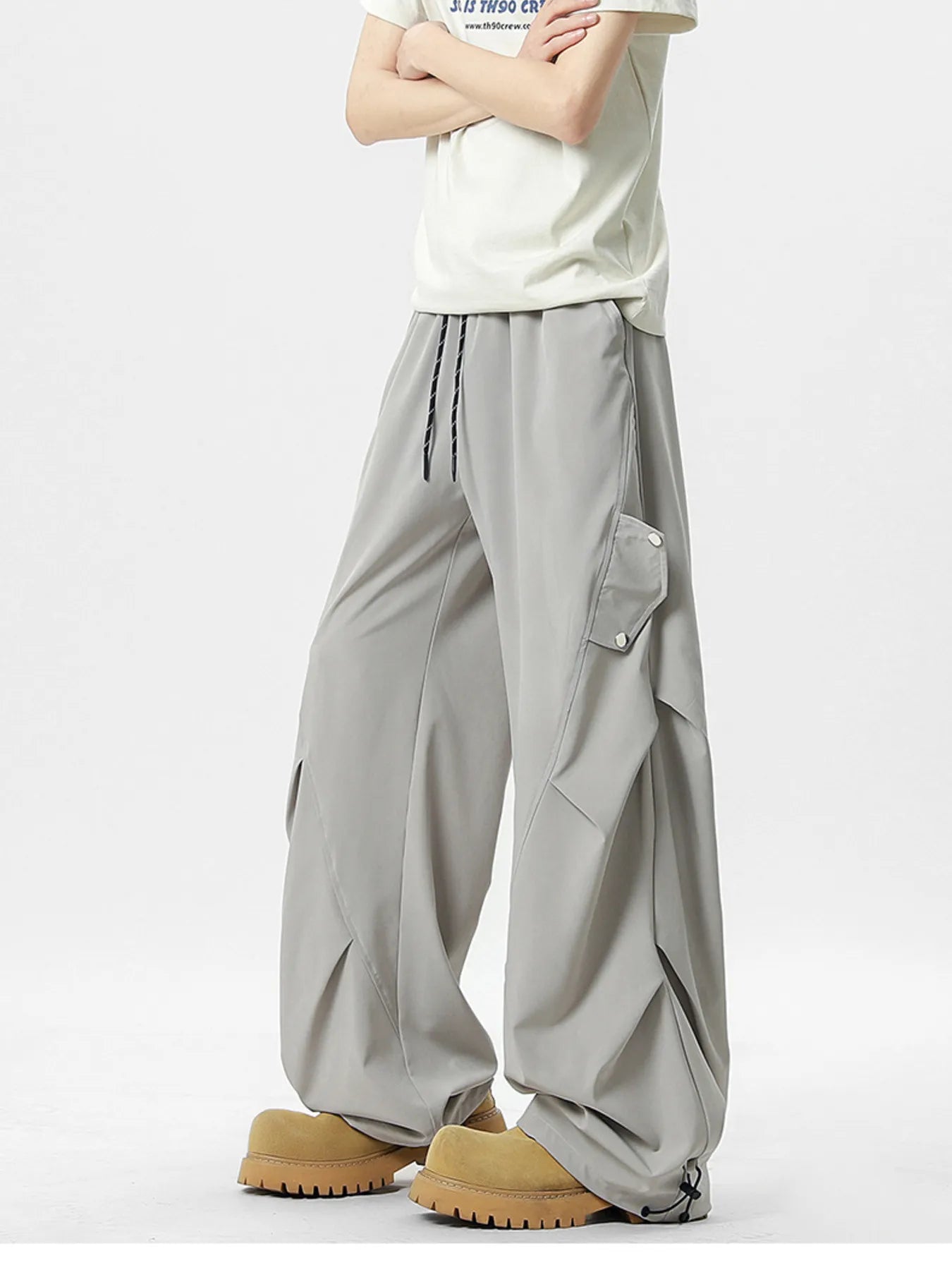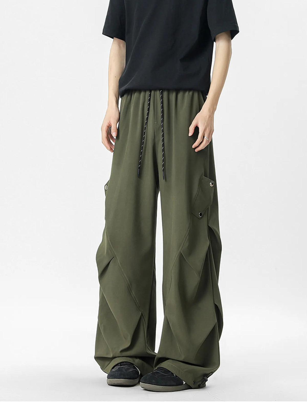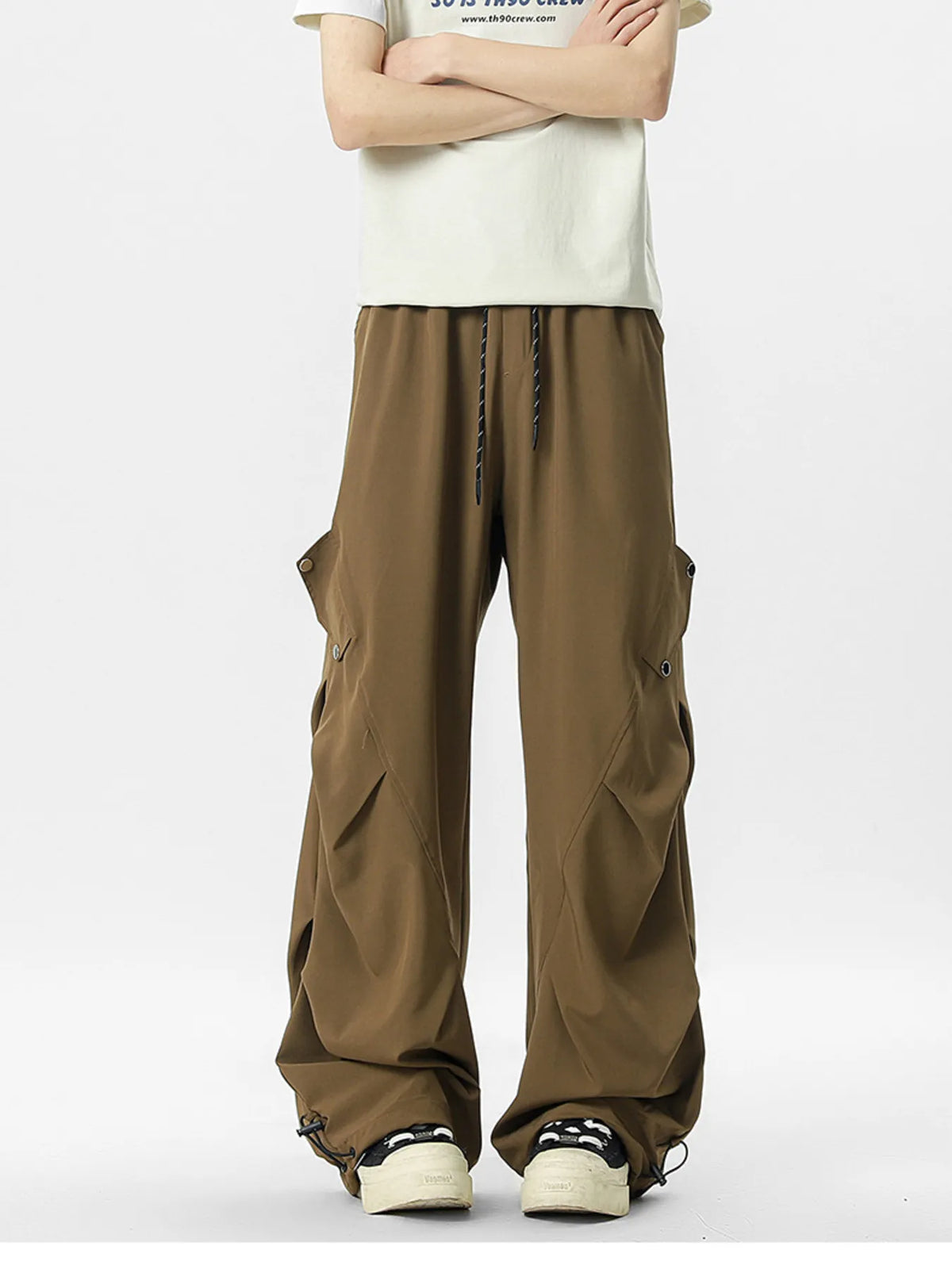 Men's Oversized Wide Leg Cargo Pants with Drawstring