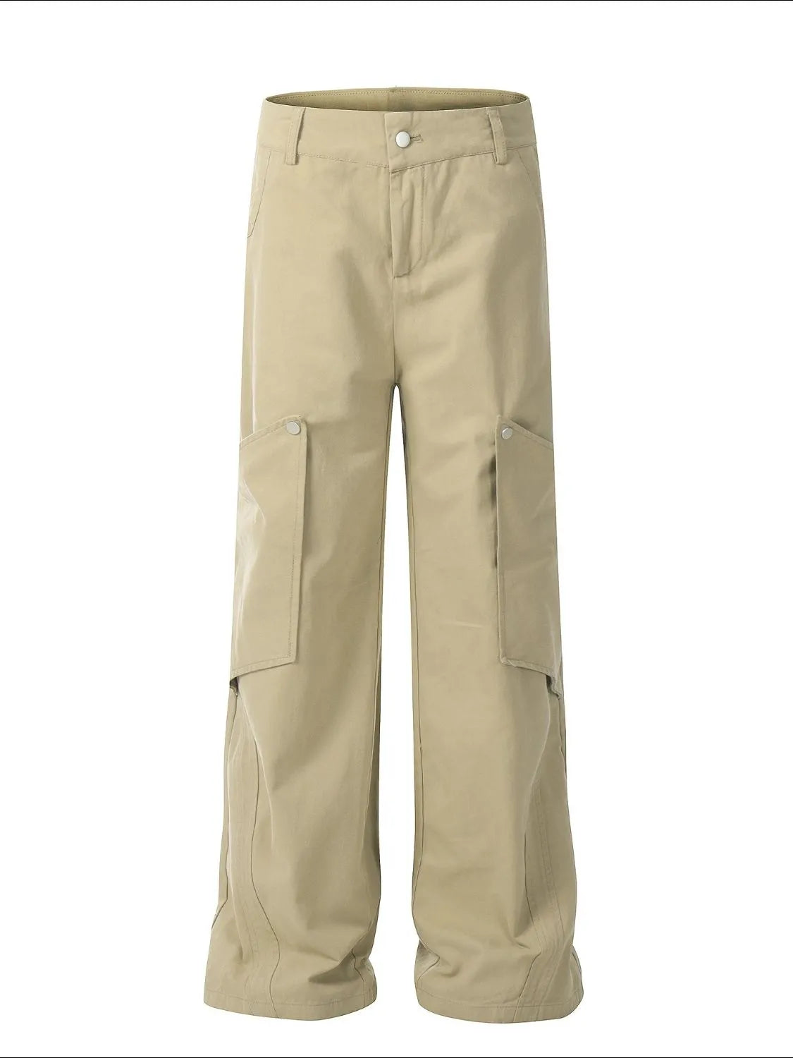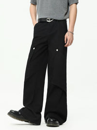 Men's Wide Leg Cargo Pants with Pockets - Black / S