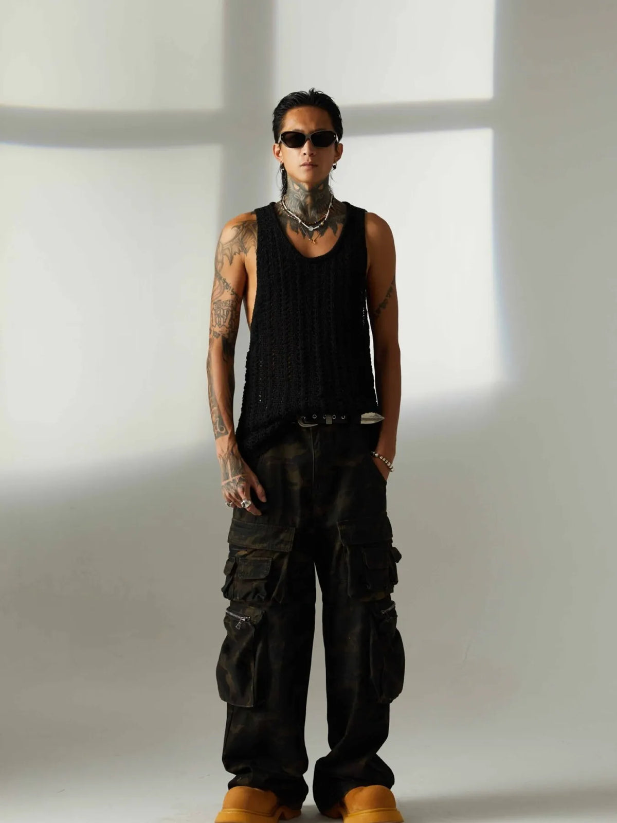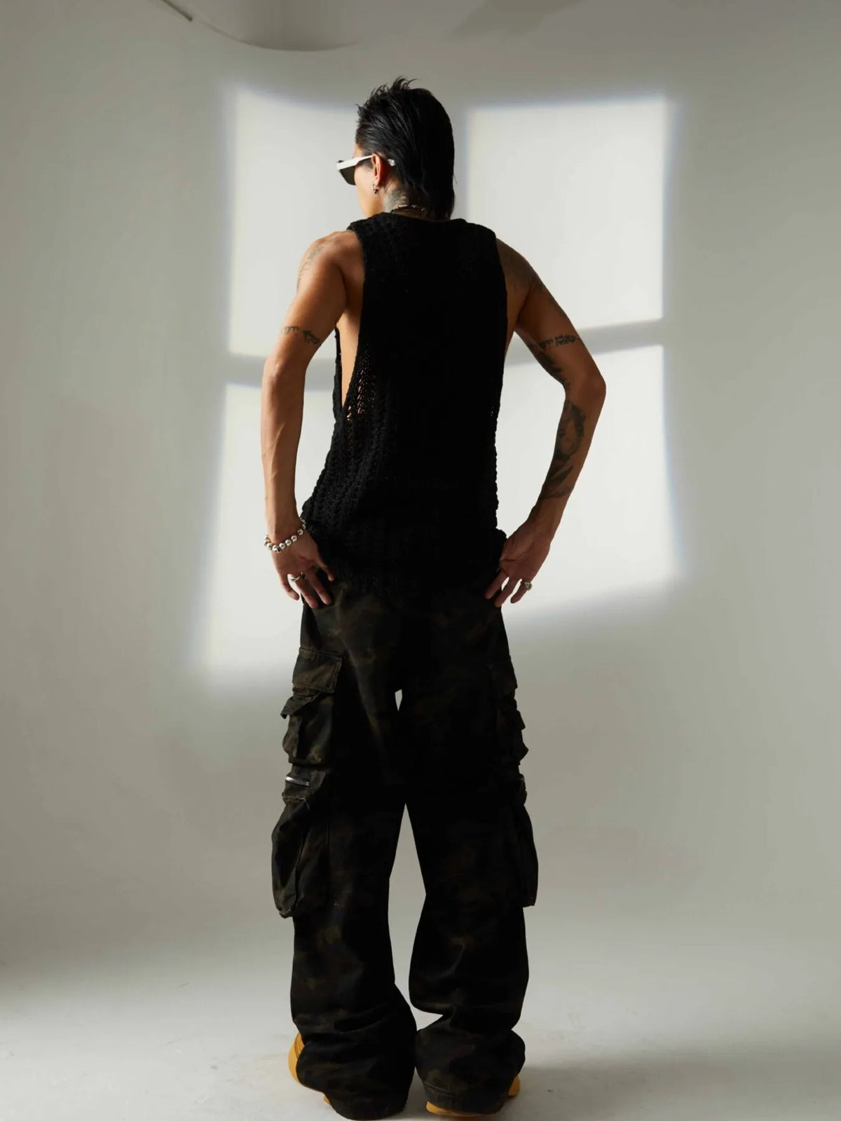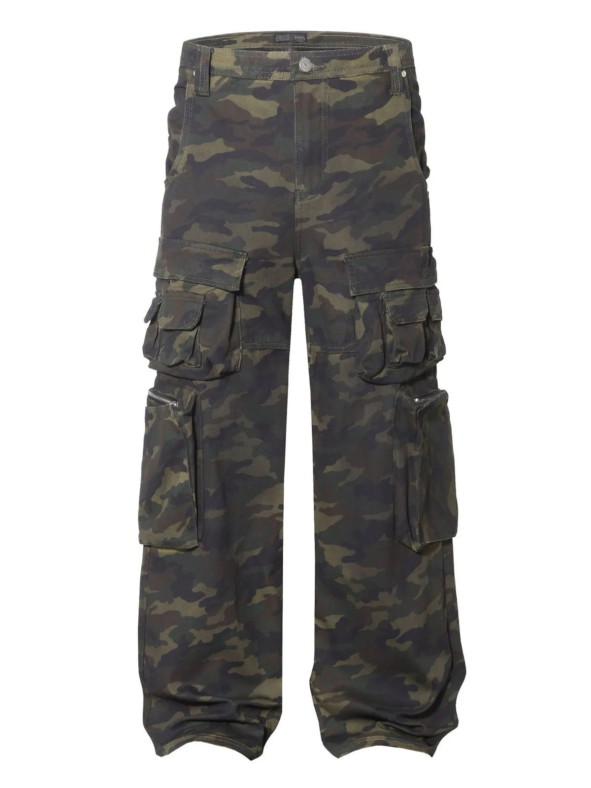 Men's Camo Multi-Pocket Cargo Pants - Camouflage Green / S