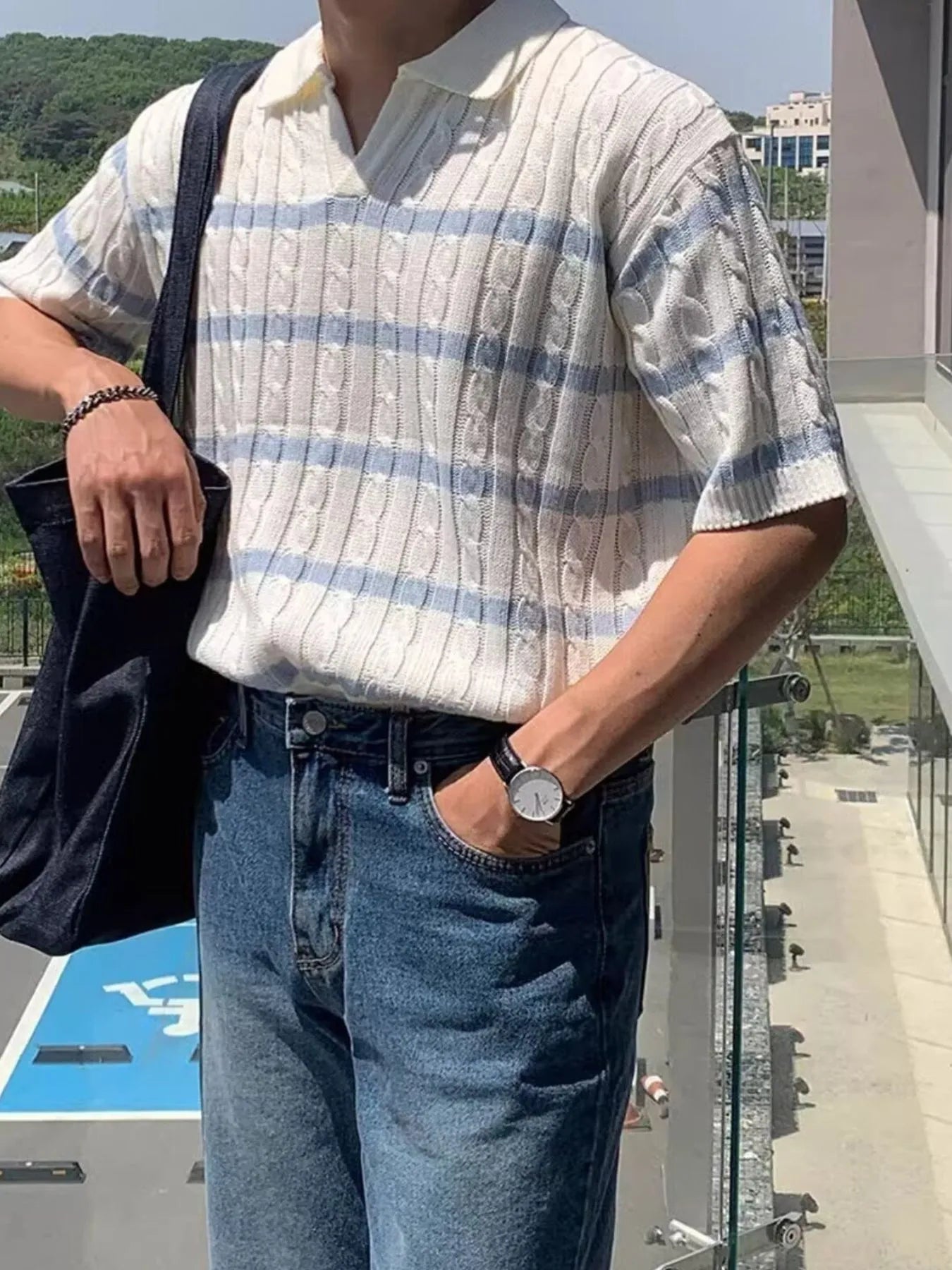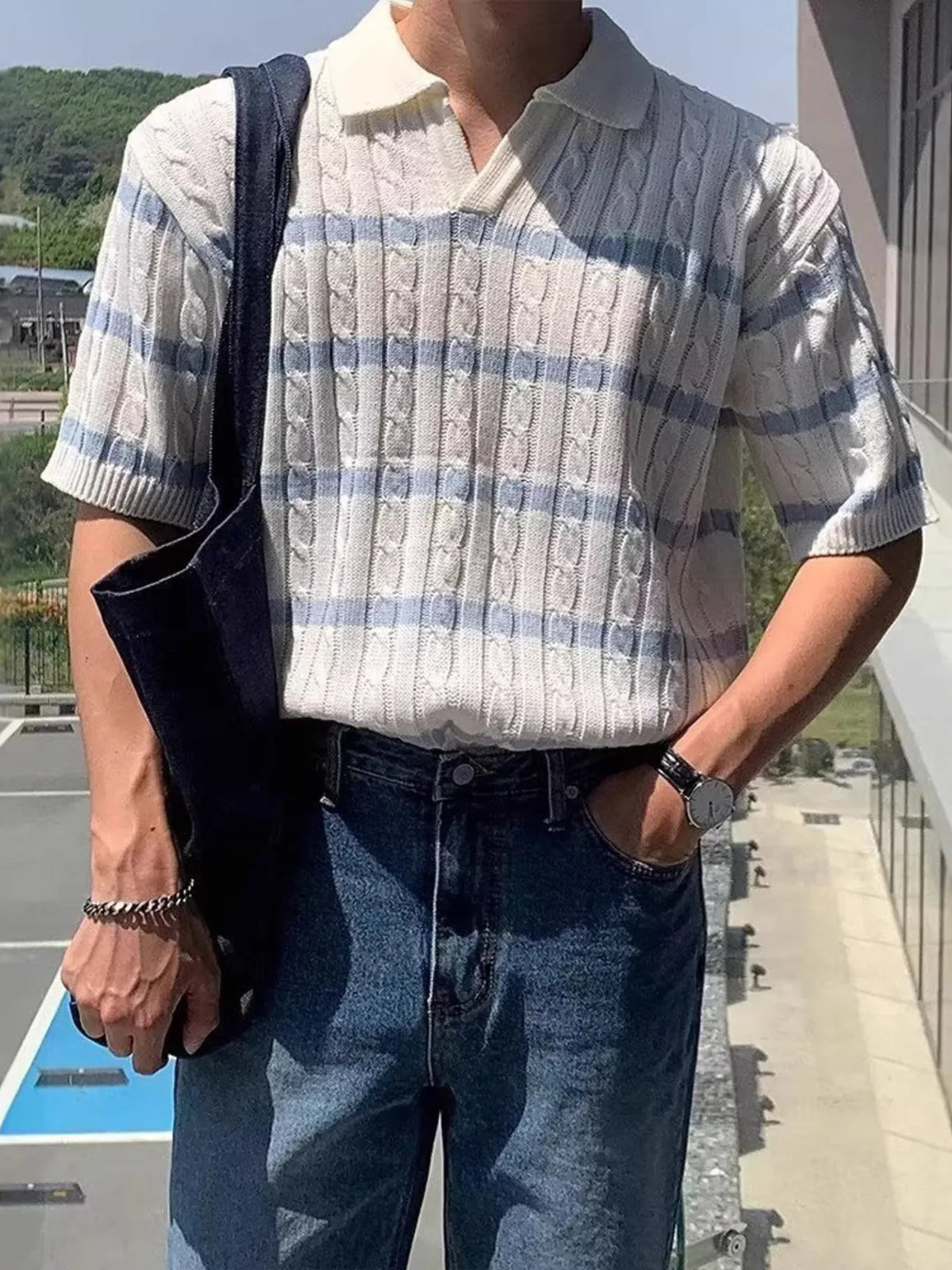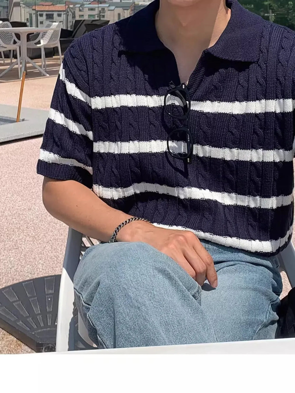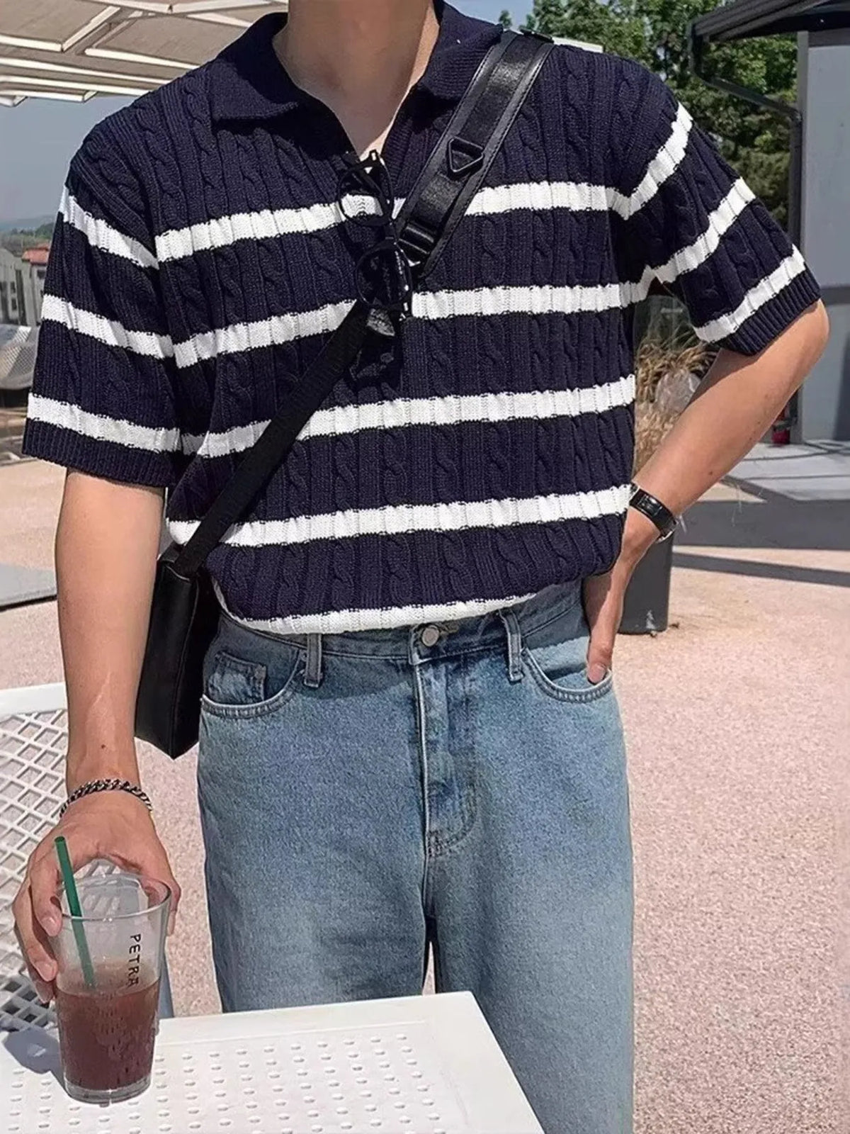 Men's Full Size Striped Short Sleeve Polo Plus Size