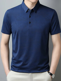 Men's Plus Size Breathable Short Sleeve Geometric Polo - Navy / M