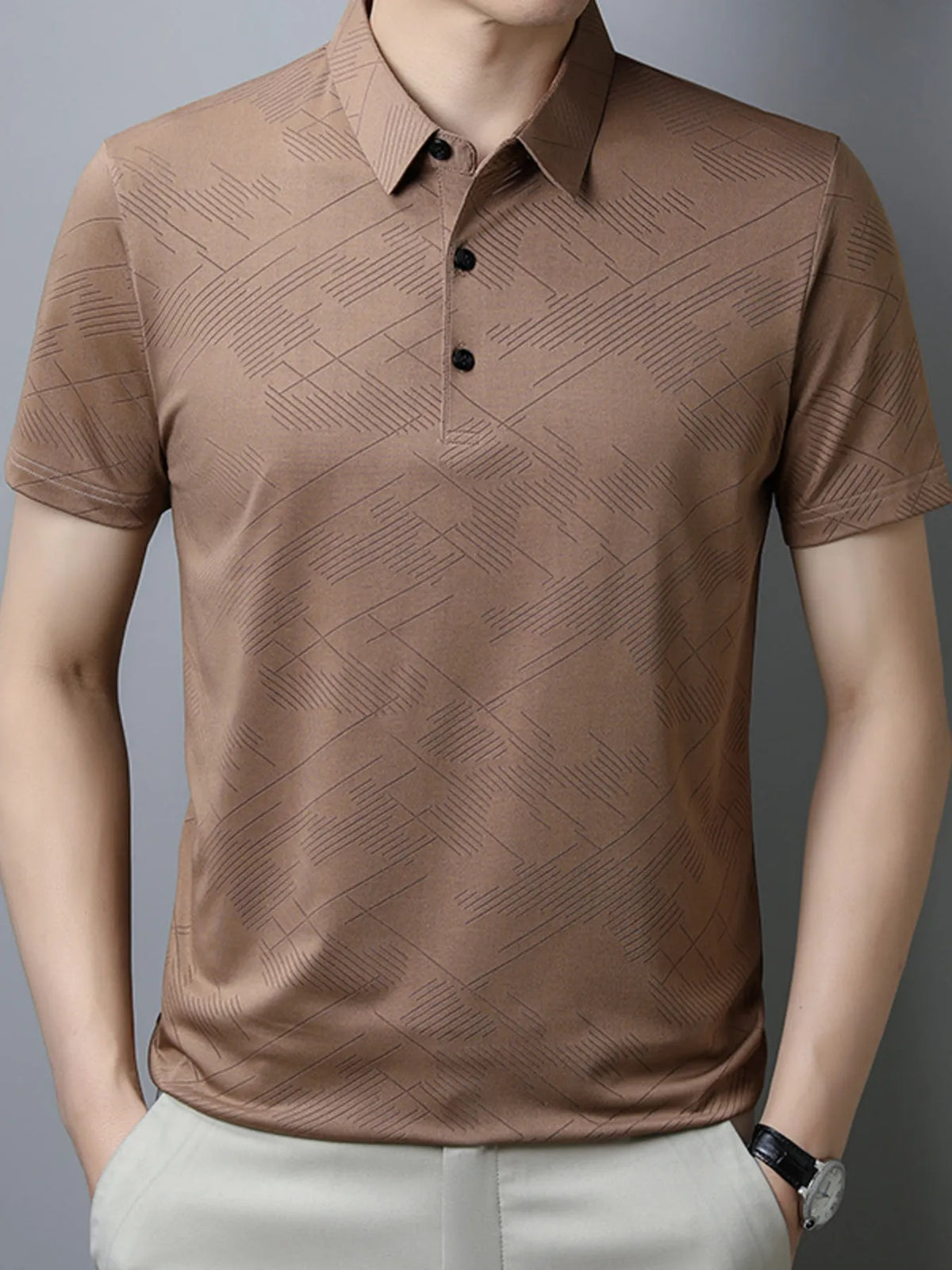 Men's Plus Size Breathable Short Sleeve Geometric Polo