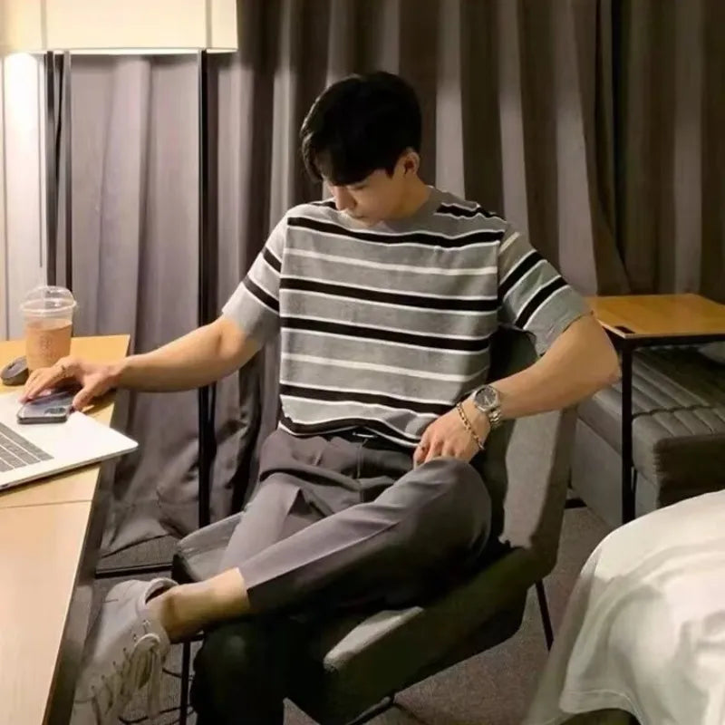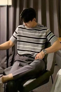 Men's Plus Size Casual Striped Short Sleeve T-Shirt - Gray / M
