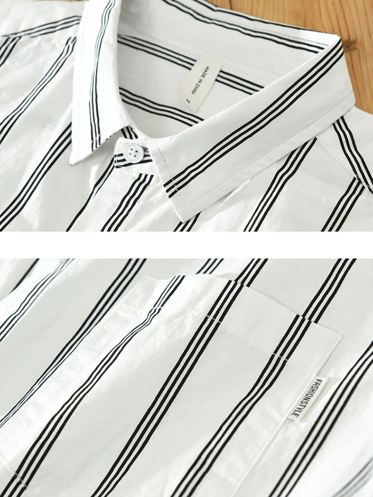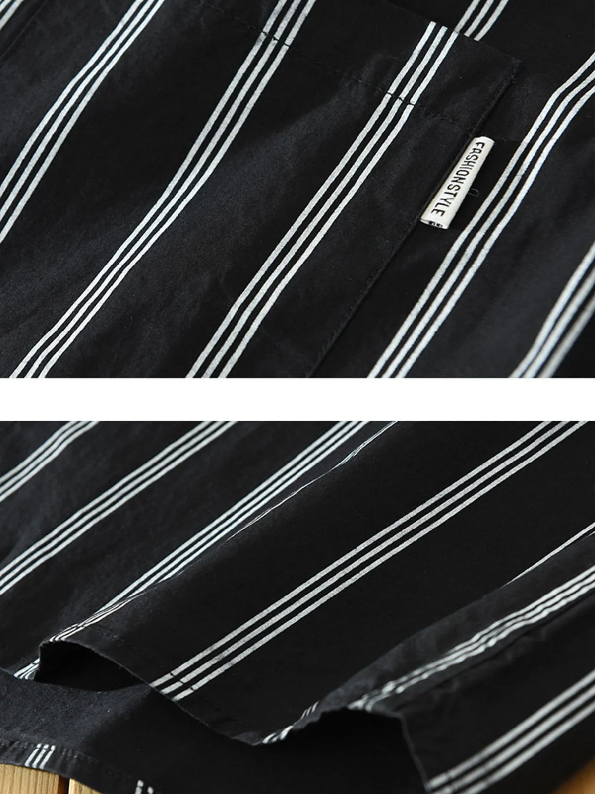 Men's Plus Size Classic Striped Short Sleeve Button-Up Shirt
