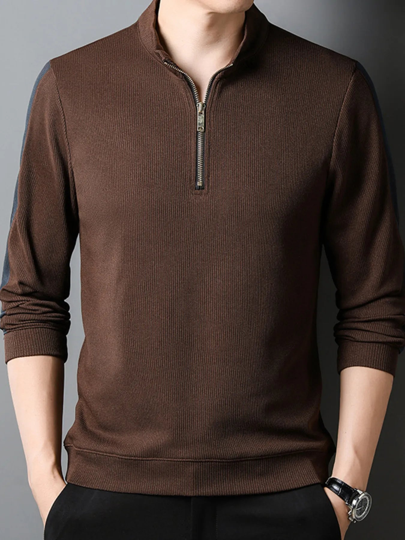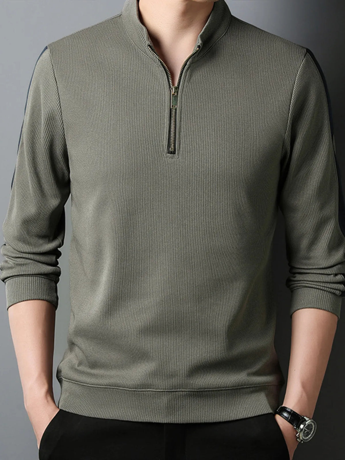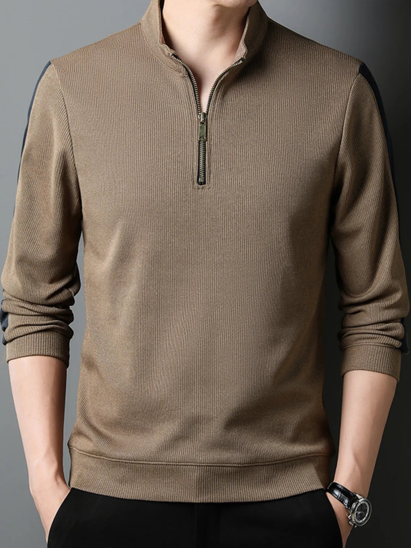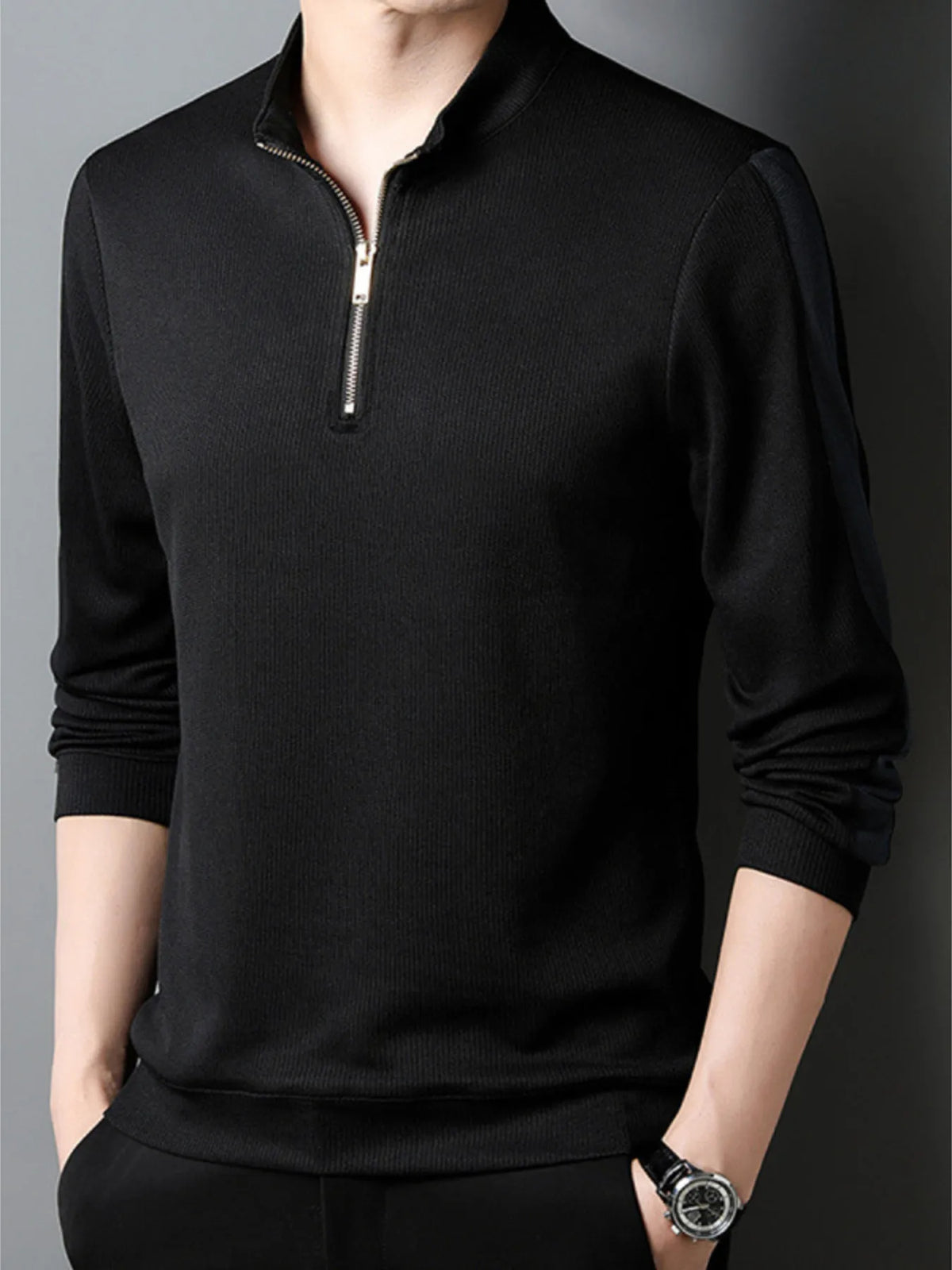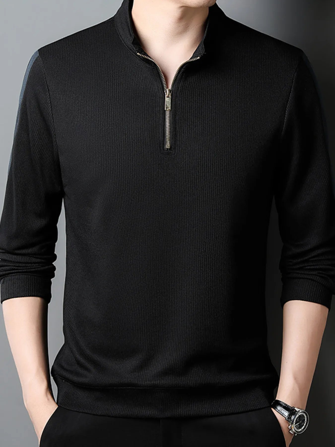 Men's Plus Size Quarter Zip Long Sleeve Polo