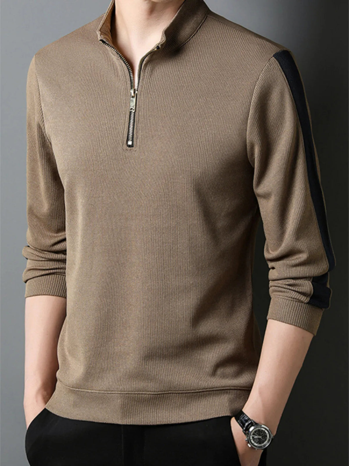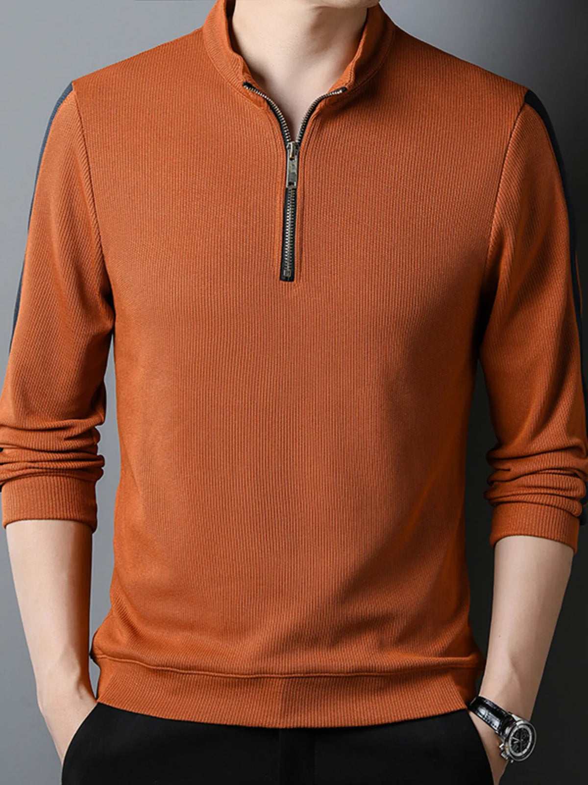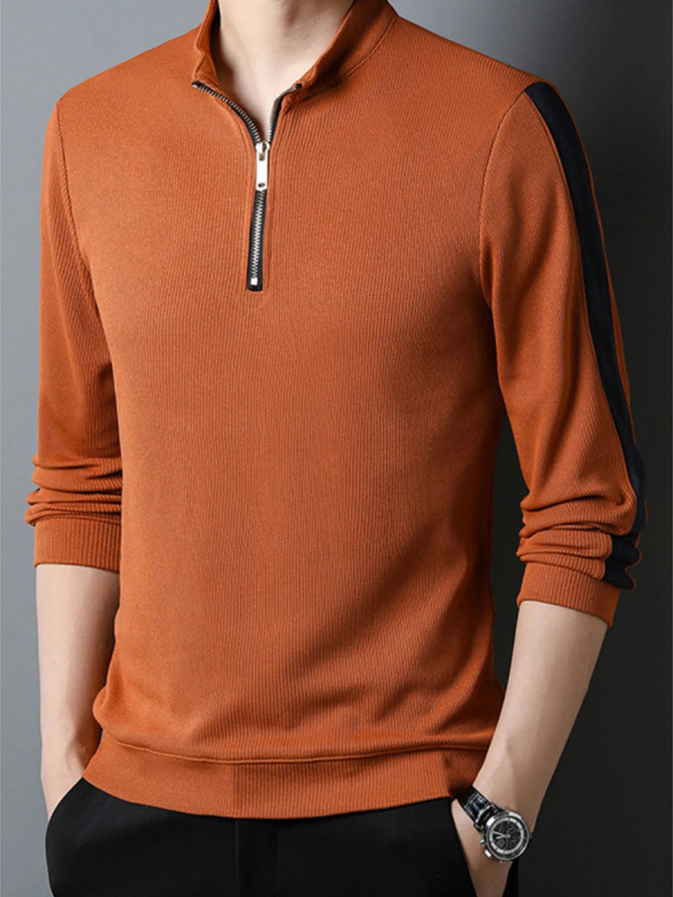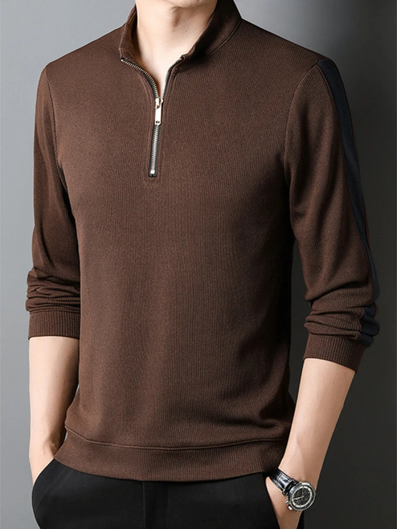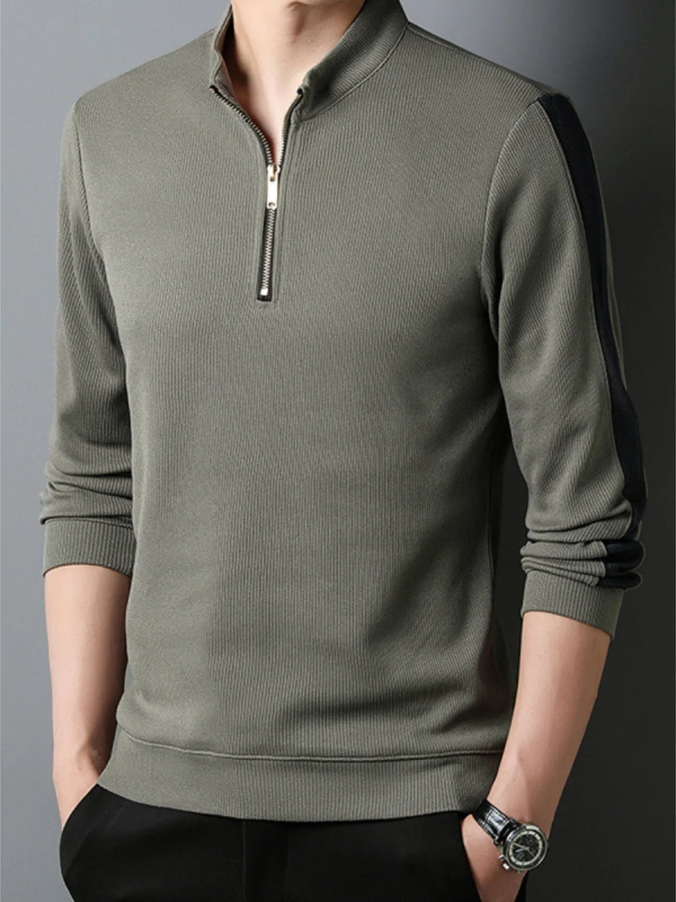 Men's Plus Size Quarter Zip Long Sleeve Polo