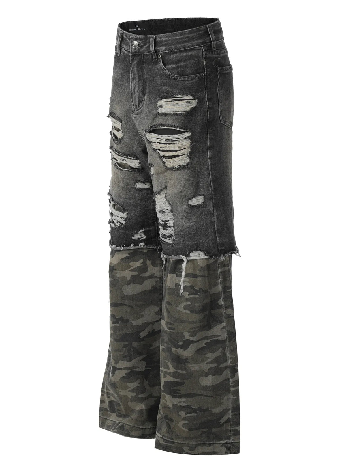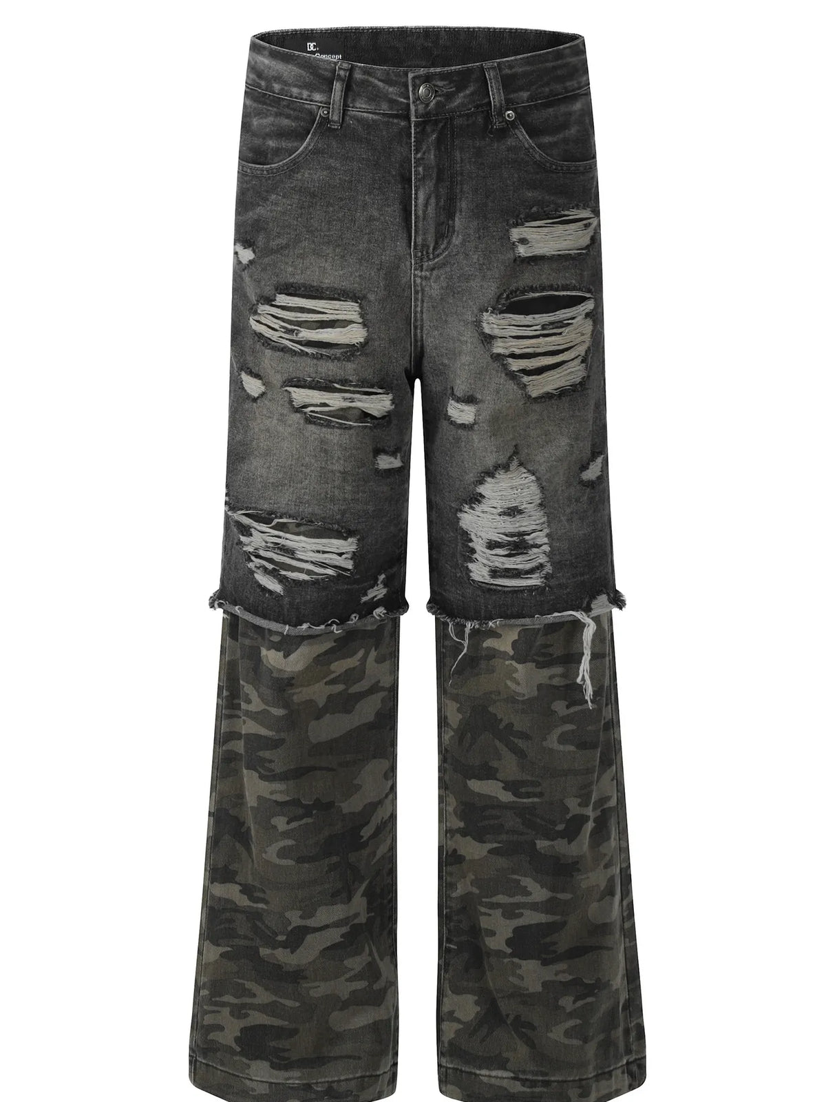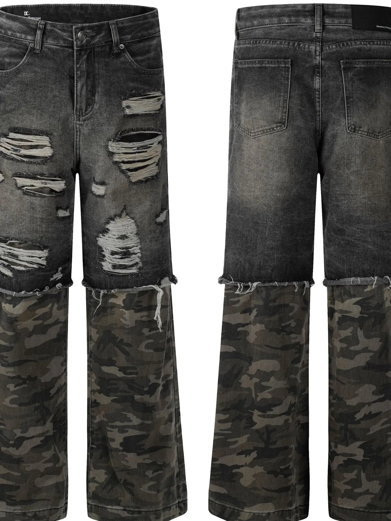 Men's Distressed Camouflage Patchwork Jeans - Black Gray / S