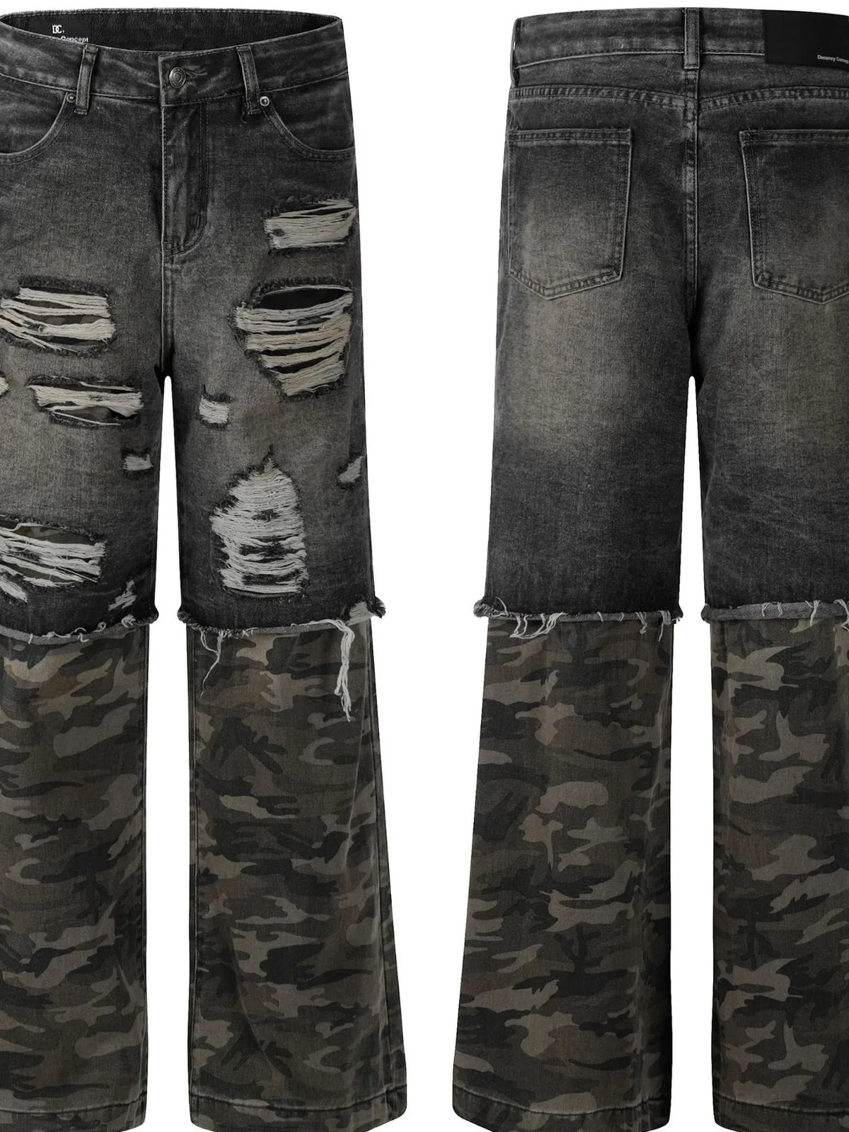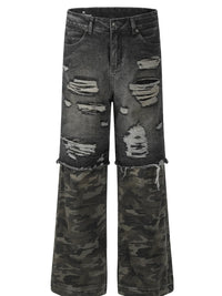 Men's Distressed Camouflage Patchwork Jeans