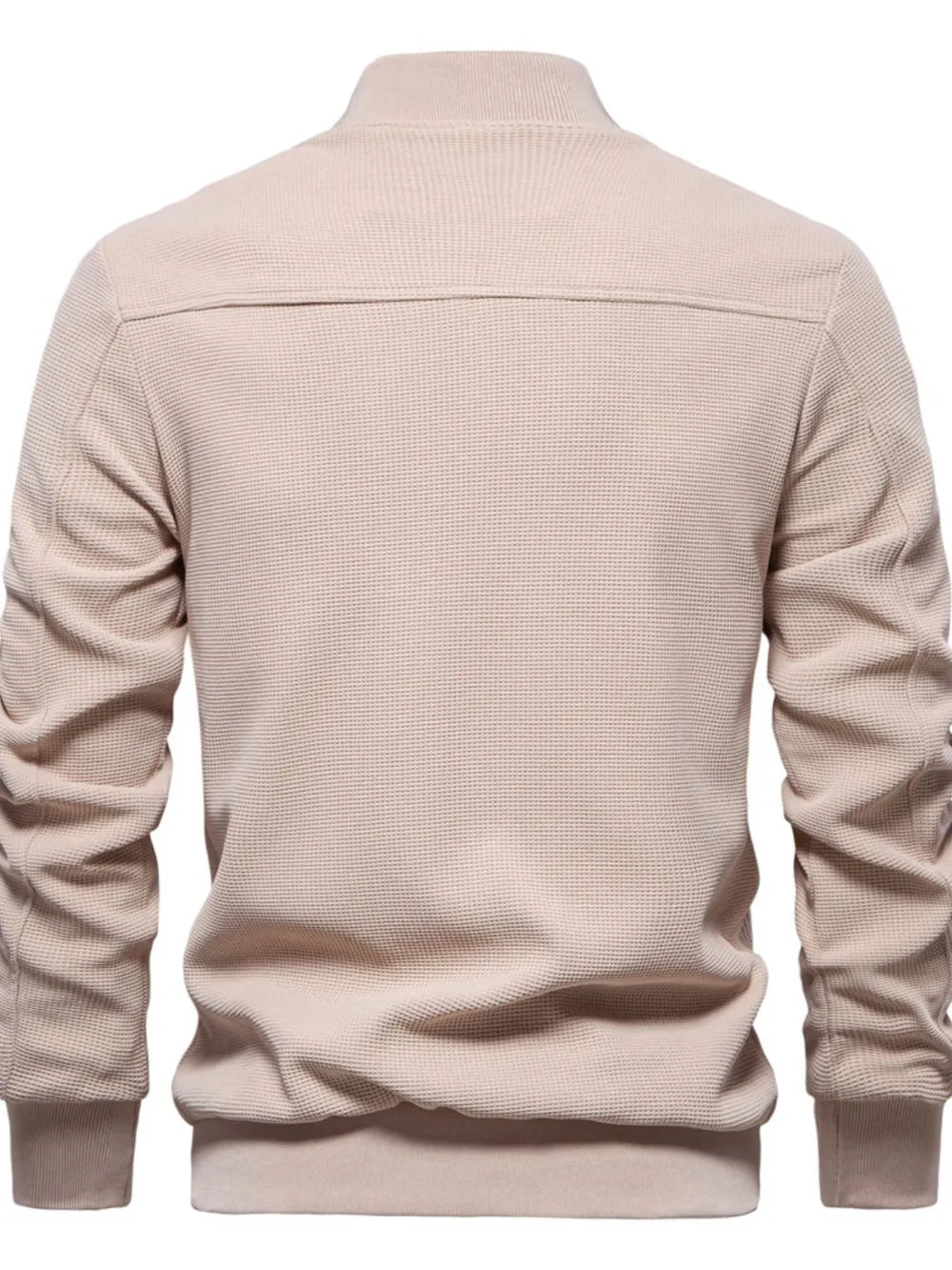 Men's Waffle Knit Baseball Collar Zip Up Jacket