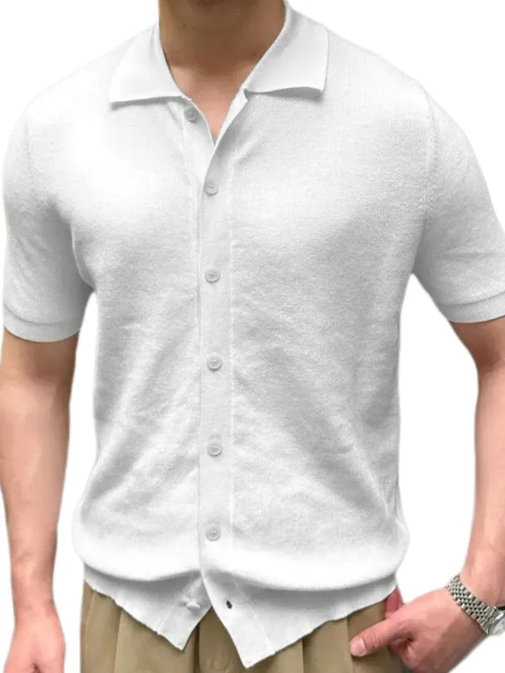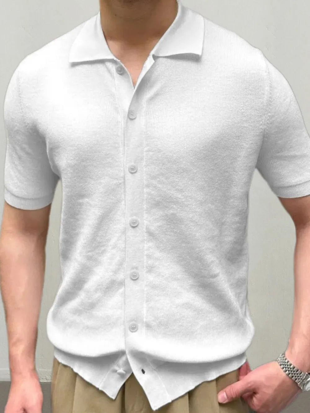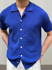 Men's Button Down Short Sleeve Knit Shirt - Royal Blue / M