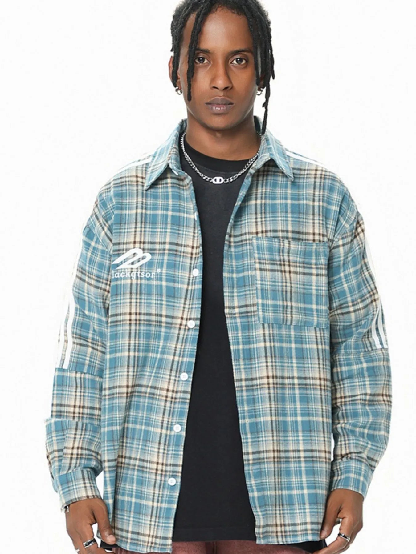 Men's Casual Plaid Flannel Button-Up Oversized Shirt