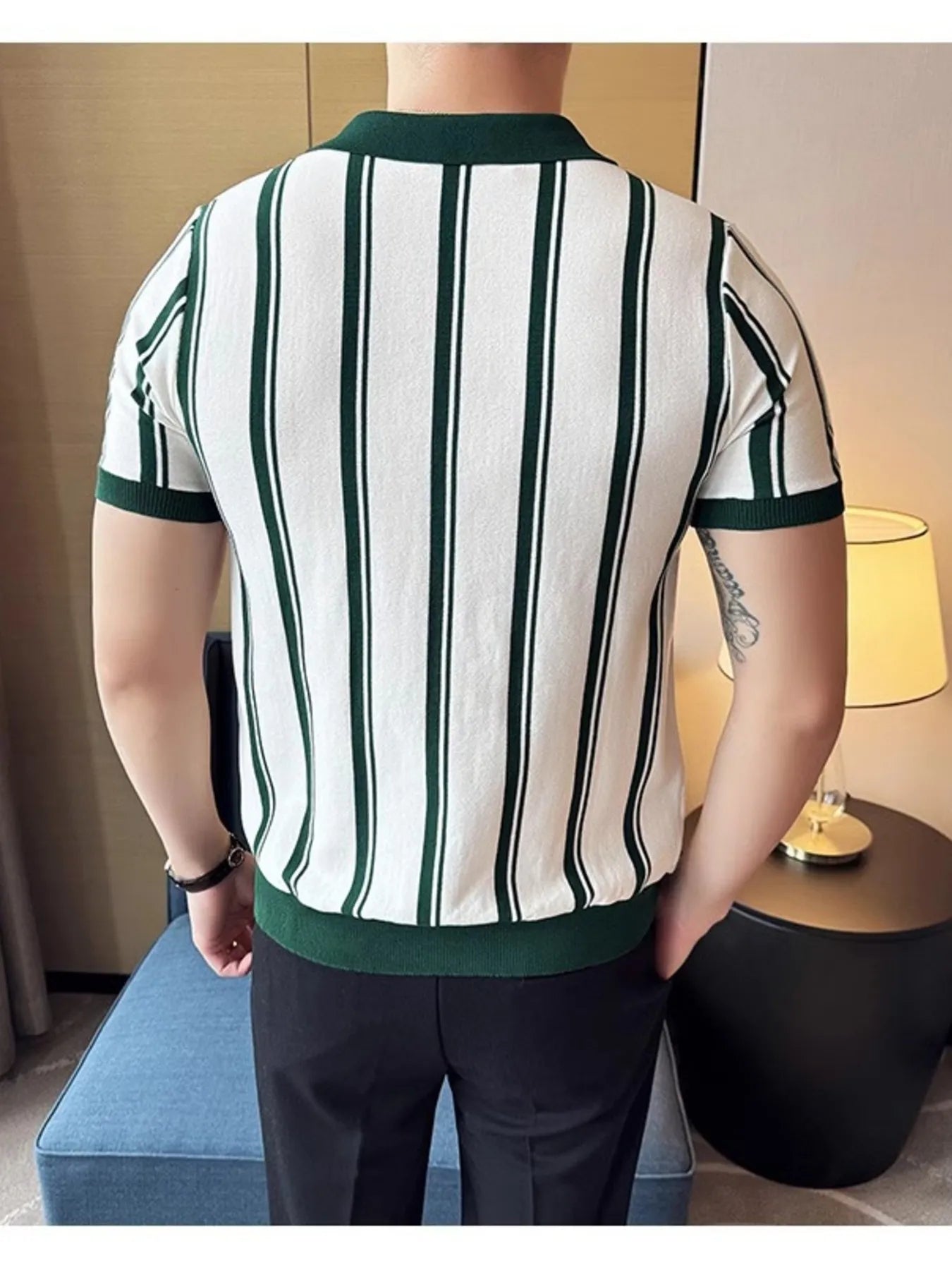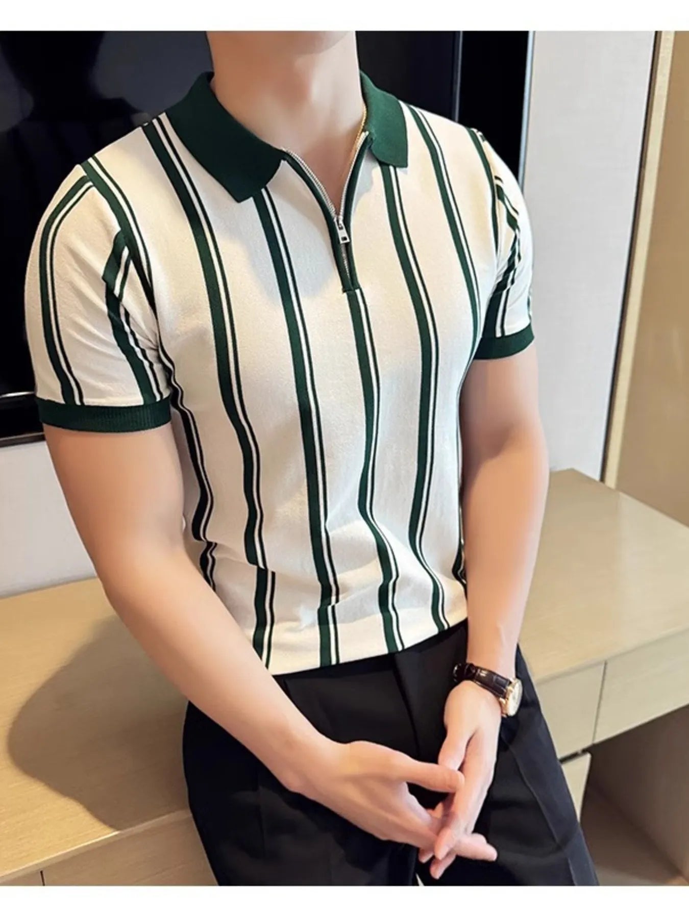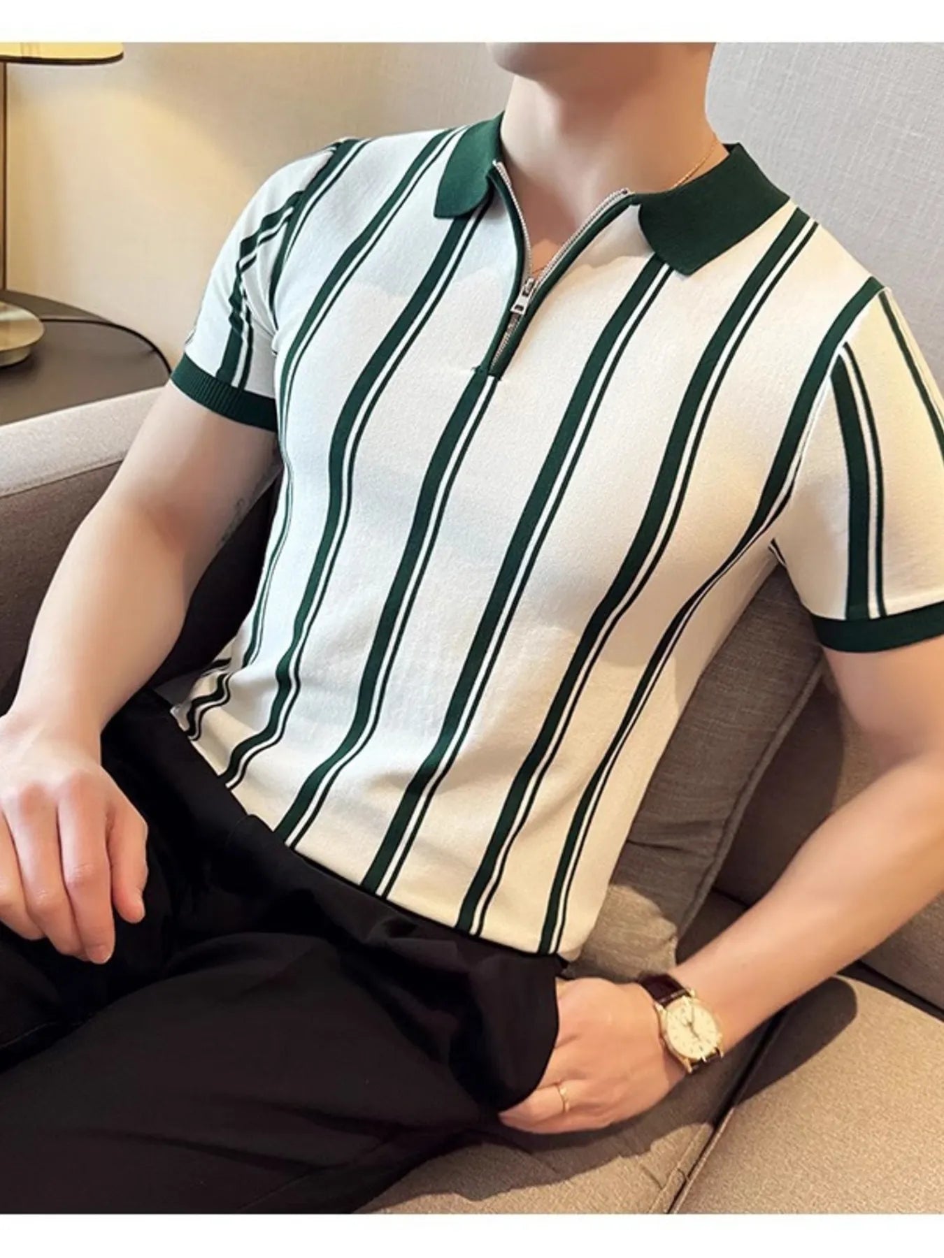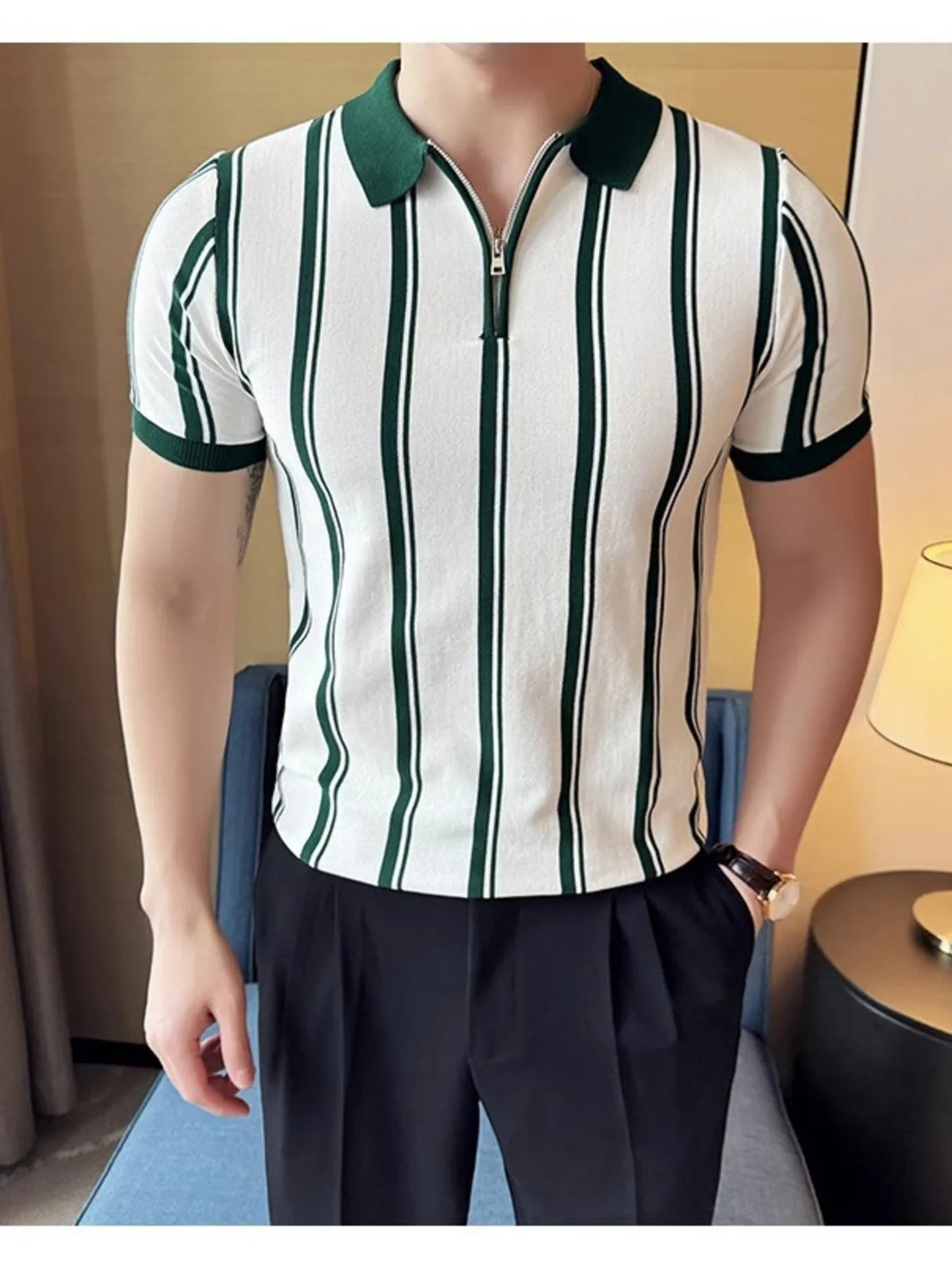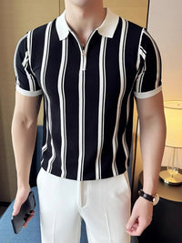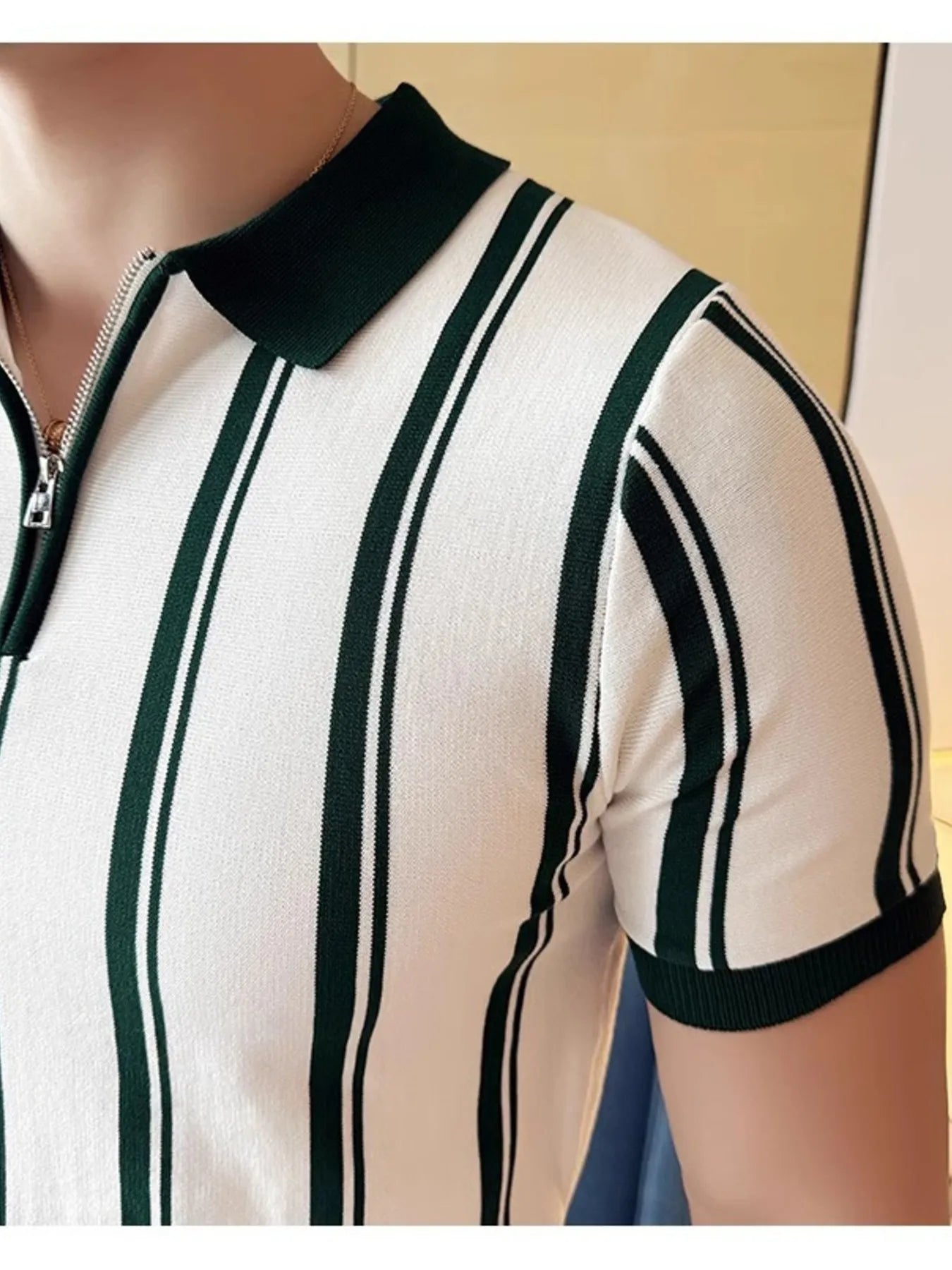 Men's Full Size Classic Striped Zip Collar Polo Shirt Plus Size