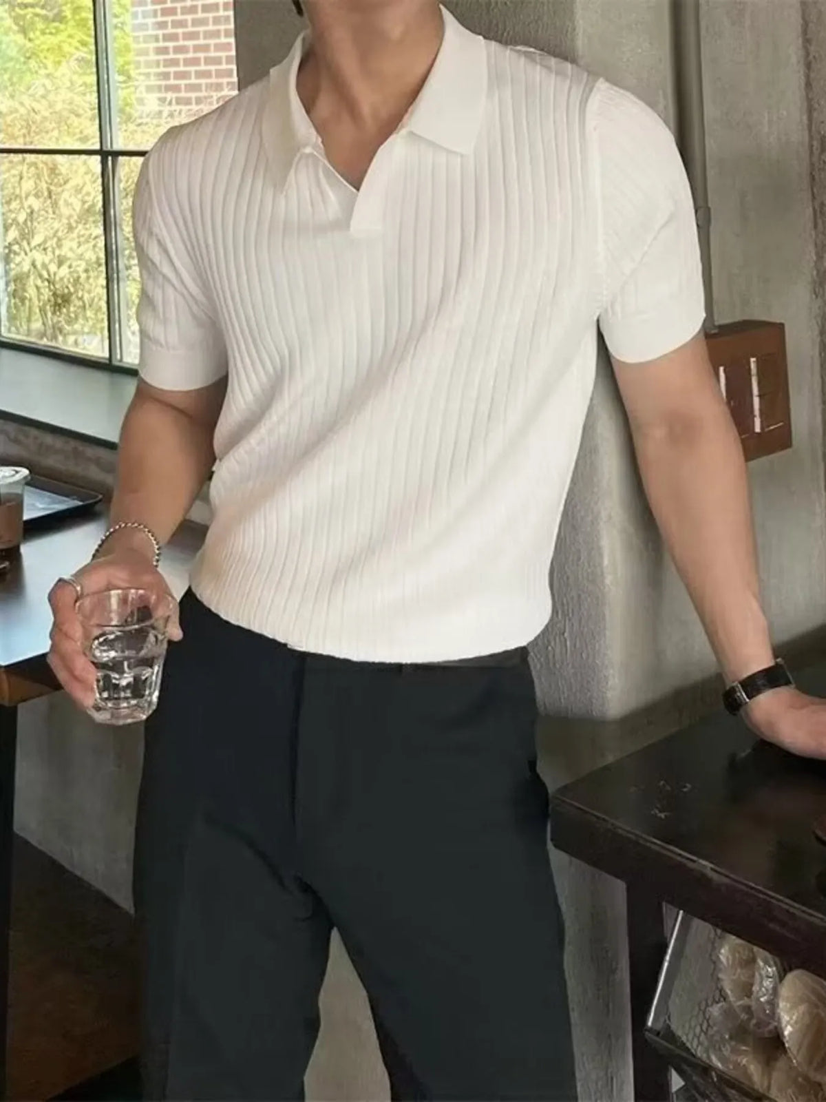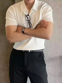 Men's Full Size Ribbed Short Sleeve Knit Polo Plus Size - White / S