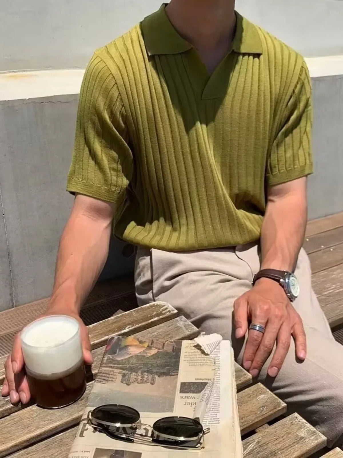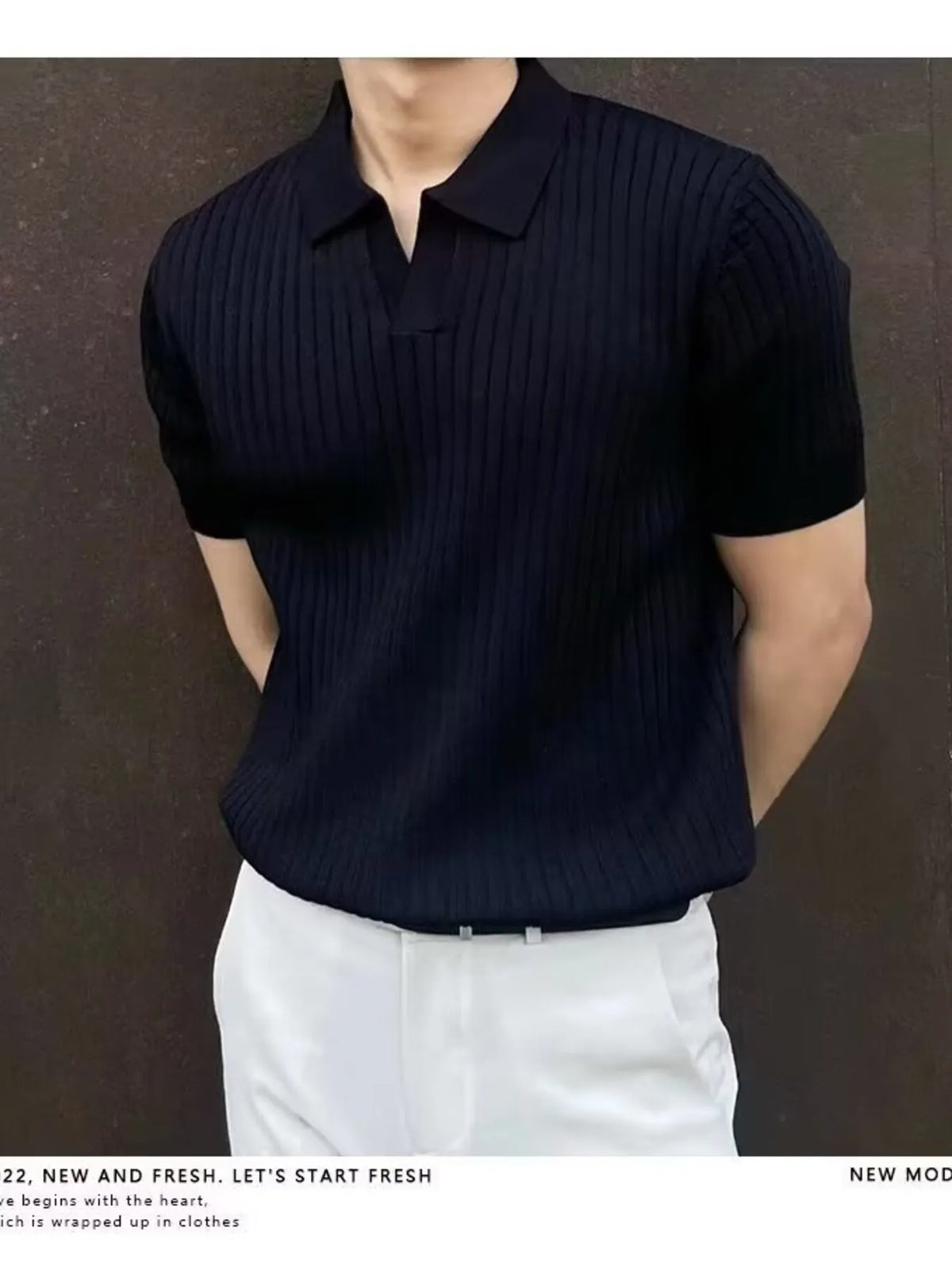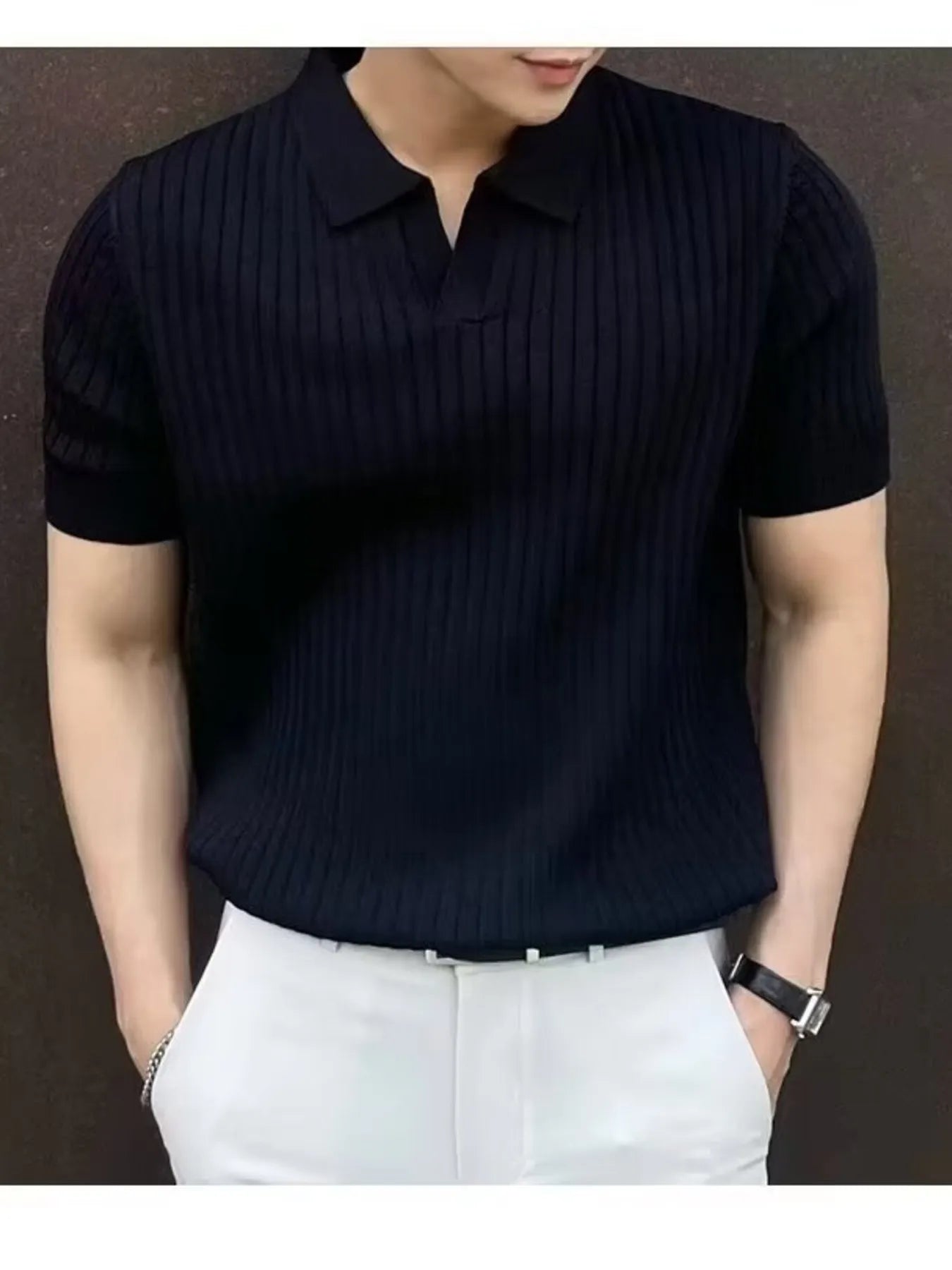 Men's Full Size Ribbed Short Sleeve Knit Polo Plus Size