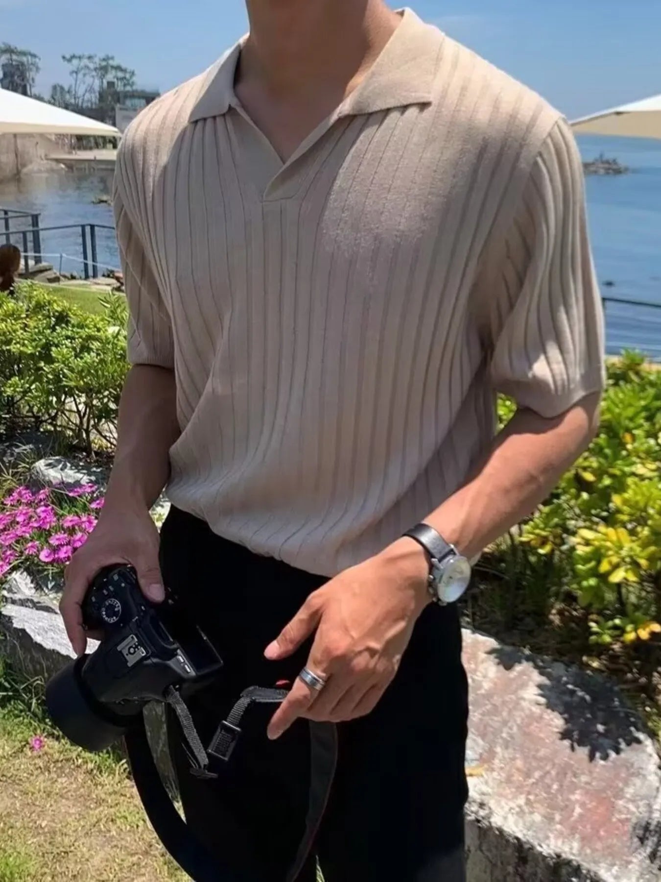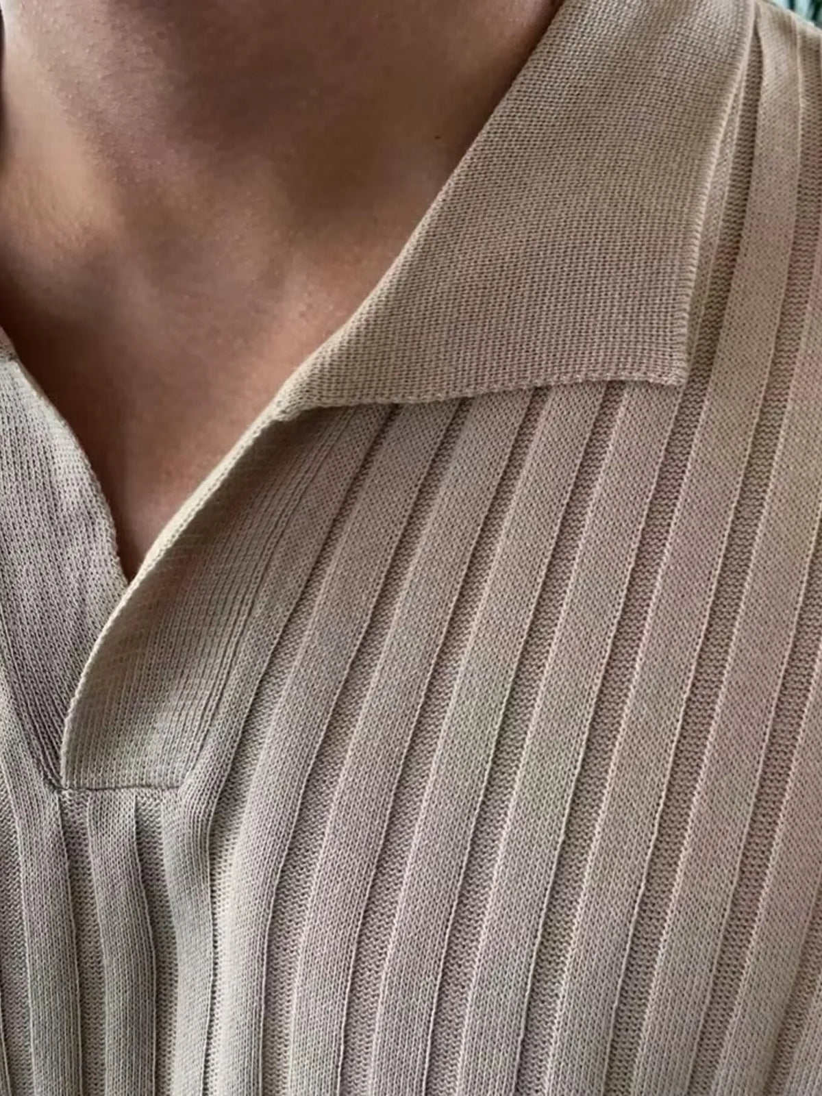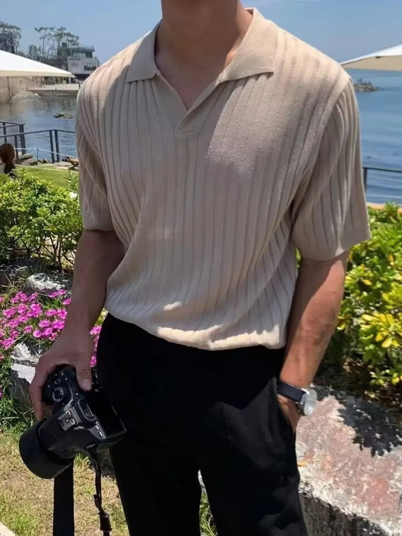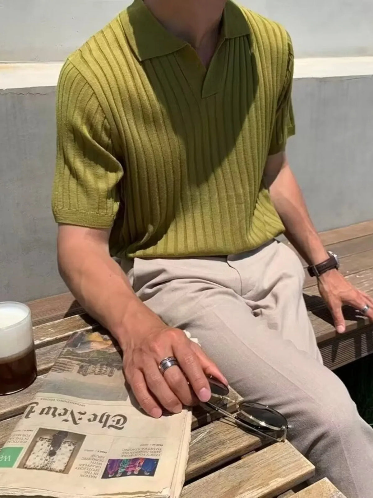 Men's Full Size Ribbed Short Sleeve Knit Polo Plus Size