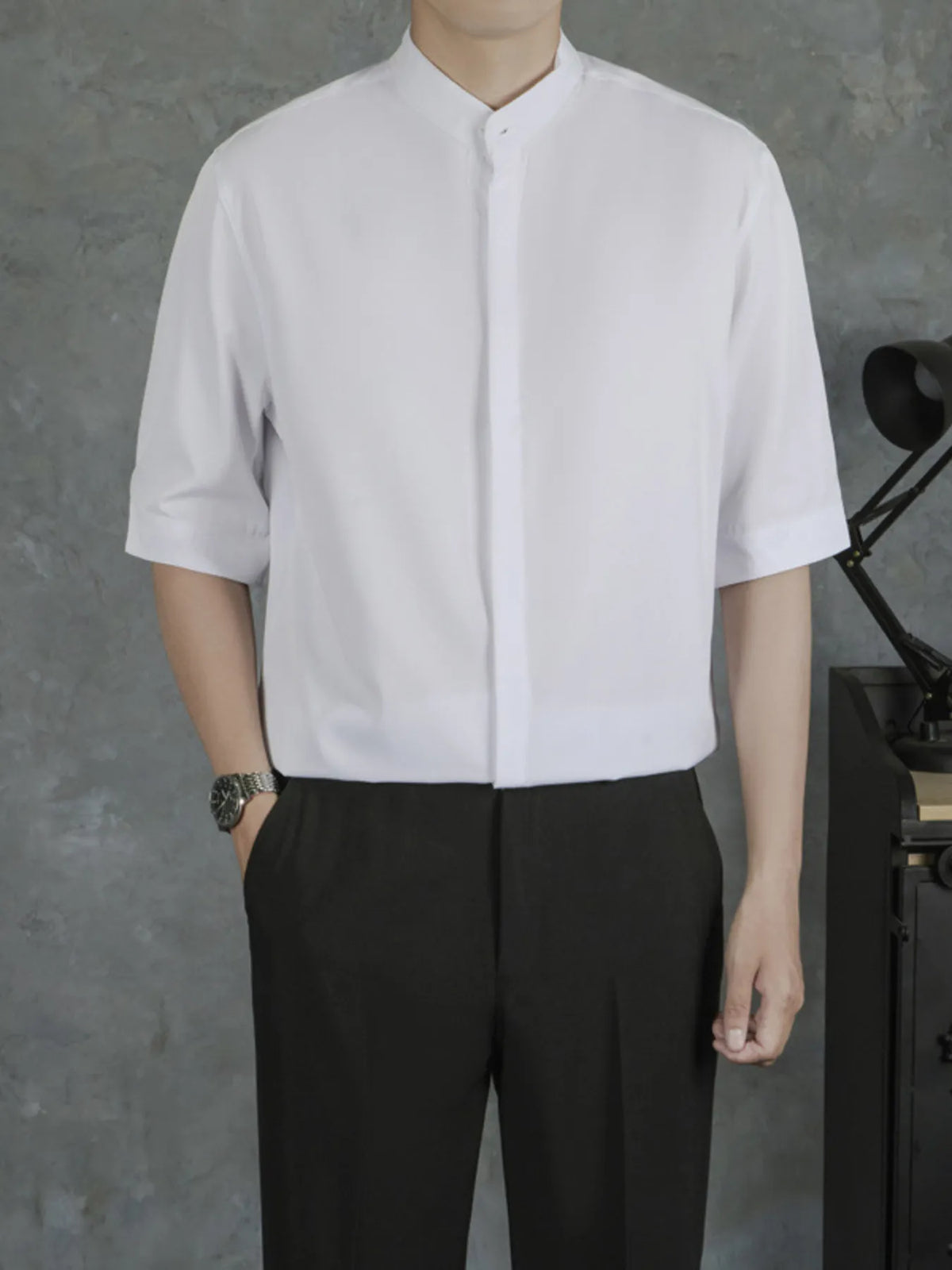 Men's Full Size Solid Collar Half Sleeve Shirt Plus Size - White / S