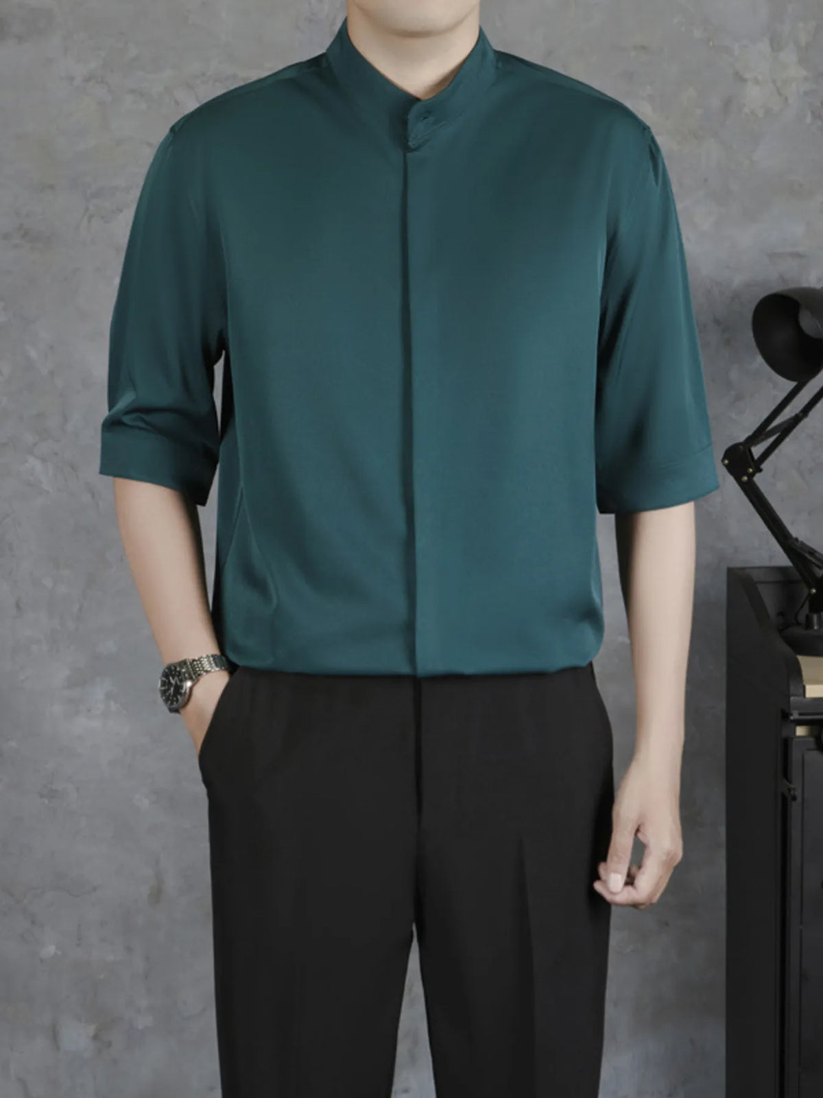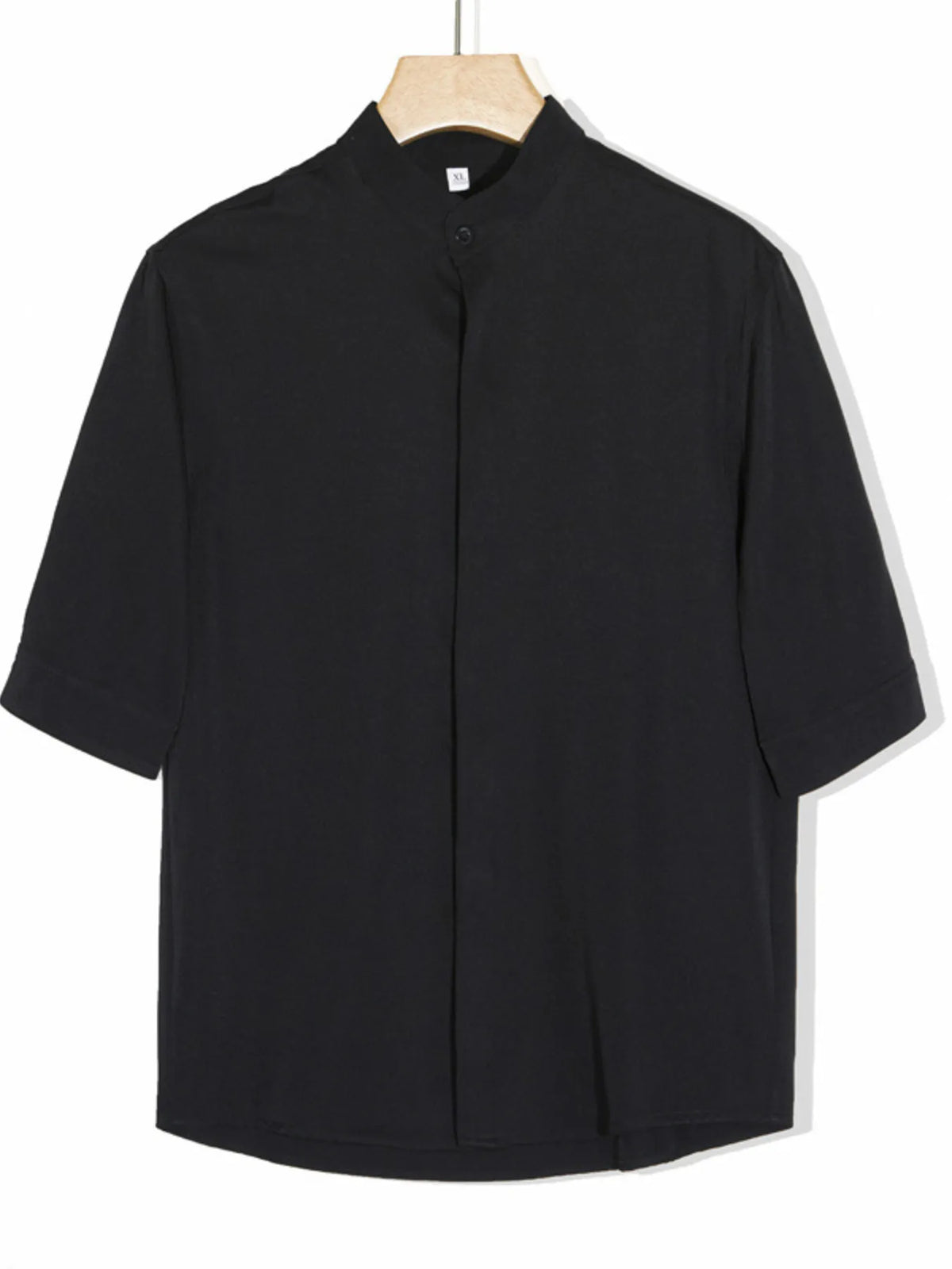 Men's Full Size Solid Collar Half Sleeve Shirt Plus Size