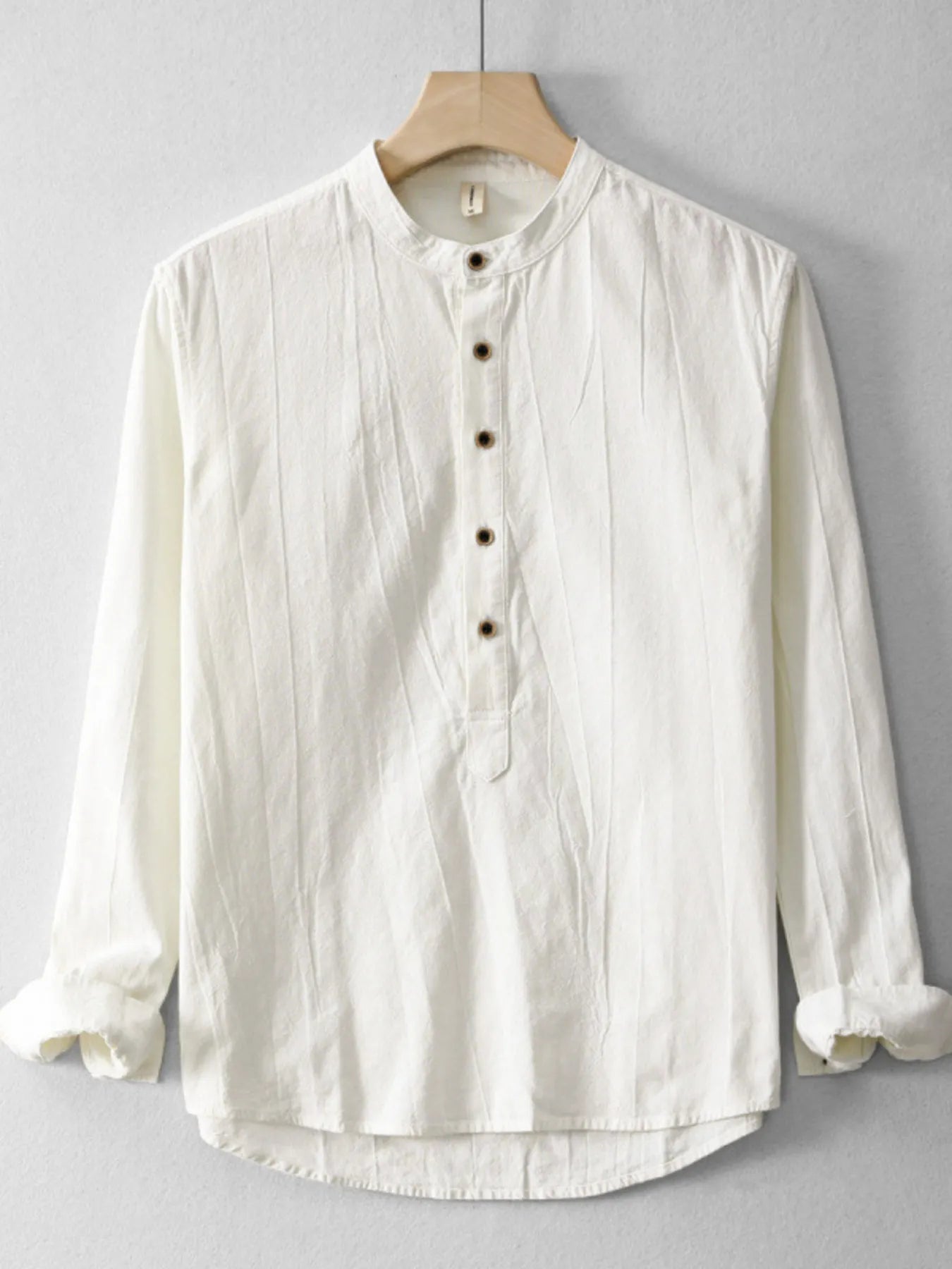 Men's Plus Size Button Front Long Sleeve Blouse - White / M