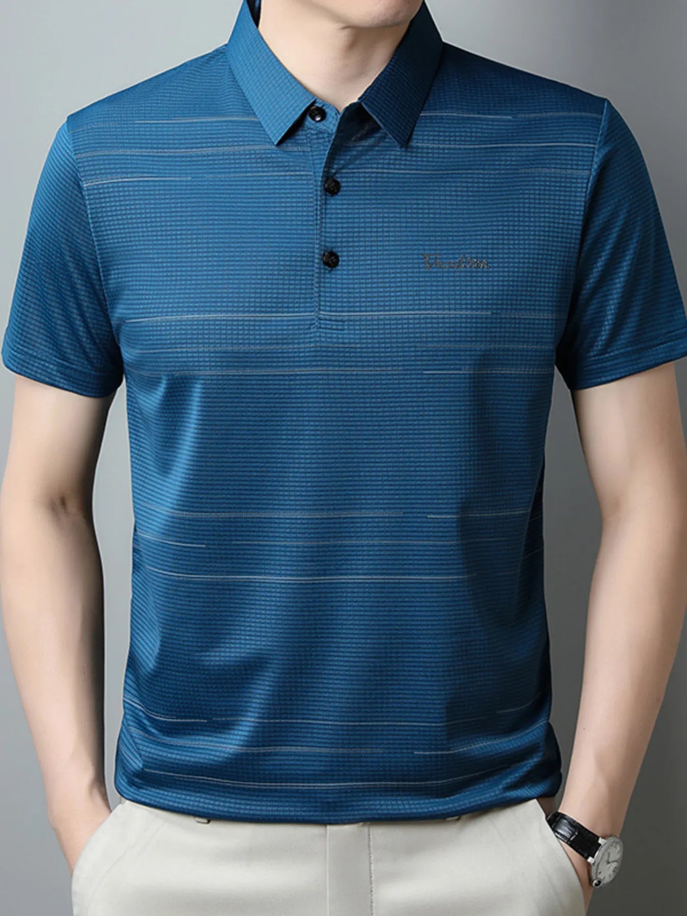 Men's Plus Size Classic Striped Quick-Dry Polo Shirt