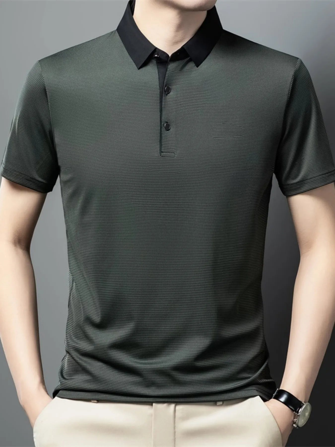 Men's Plus Size Contrast Collar Breathable Polo
