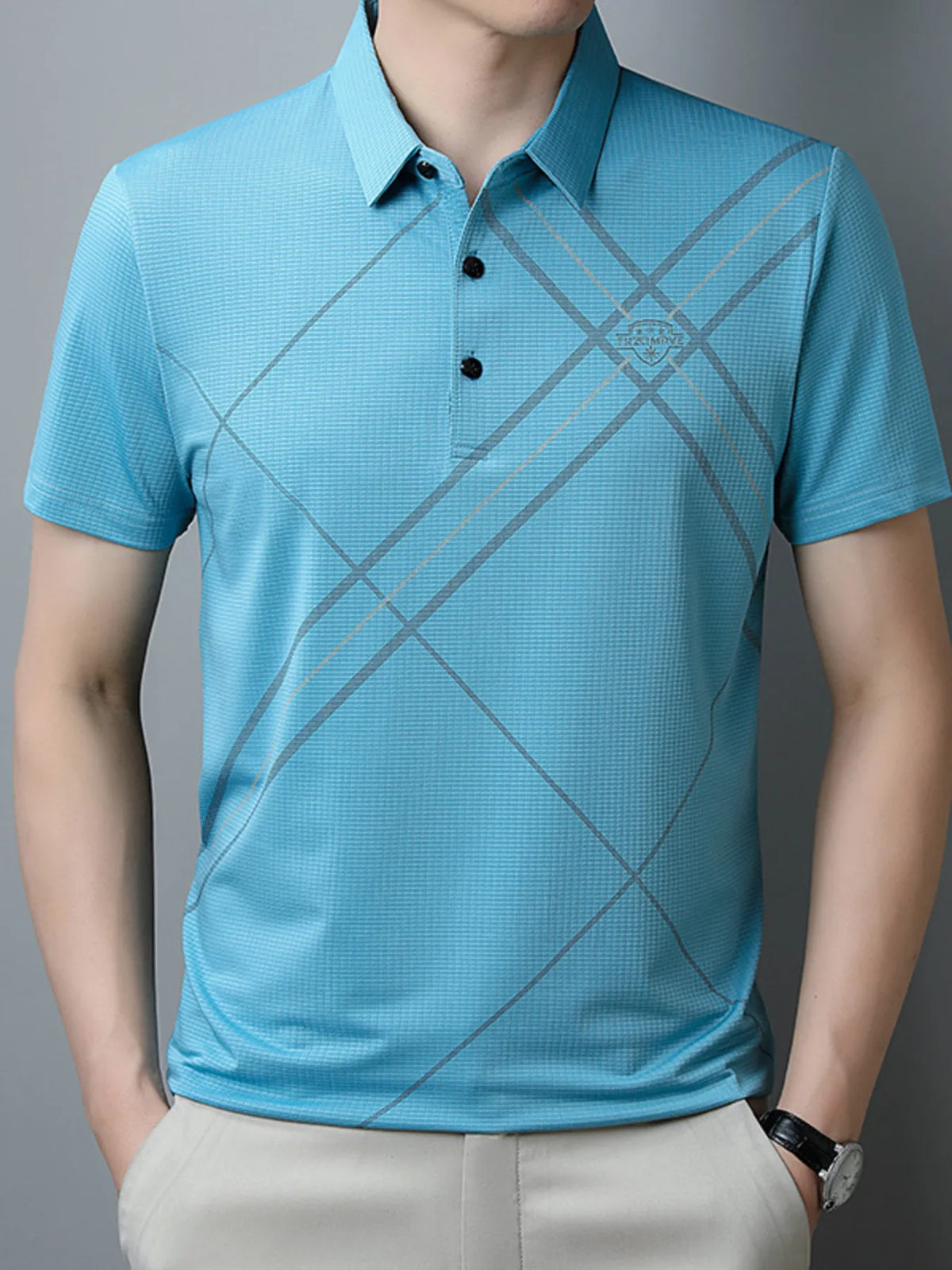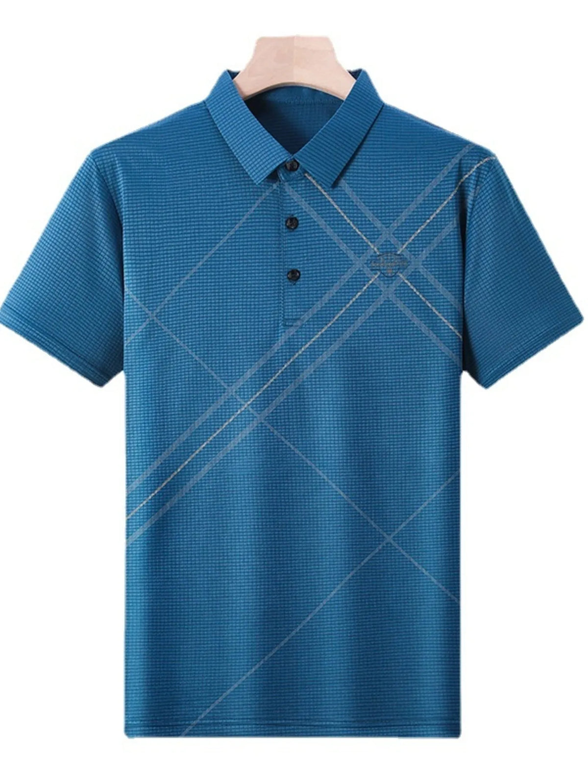 Men's Plus Size Geometric Pattern Quick-Dry Polo - Sky Blue / M