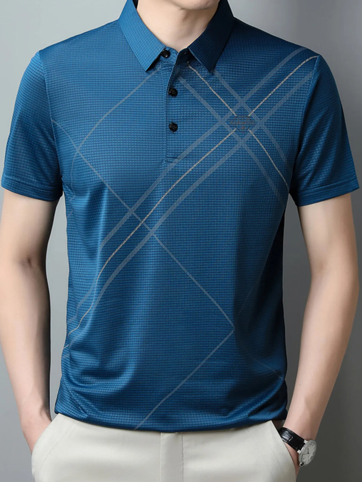 Men's Plus Size Geometric Pattern Quick-Dry Polo