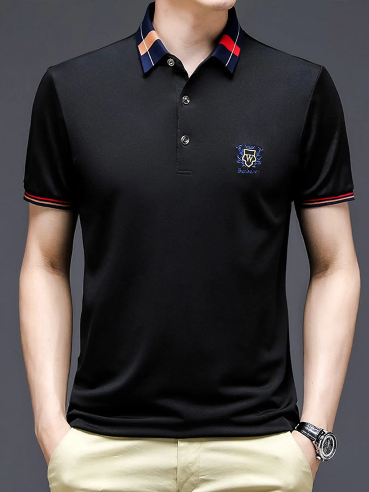 Men's Plus Size Short Sleeve Contrast Collar Polo Shirt