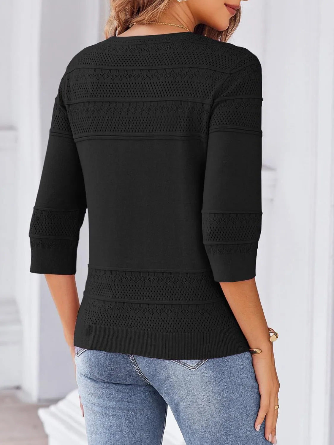 Button Up 3/4 Sleeve Cardigan - Light Blue / S