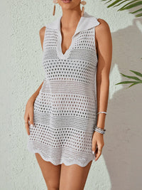 Crochet Knit Sleeveless Cover-Up Mini Dress