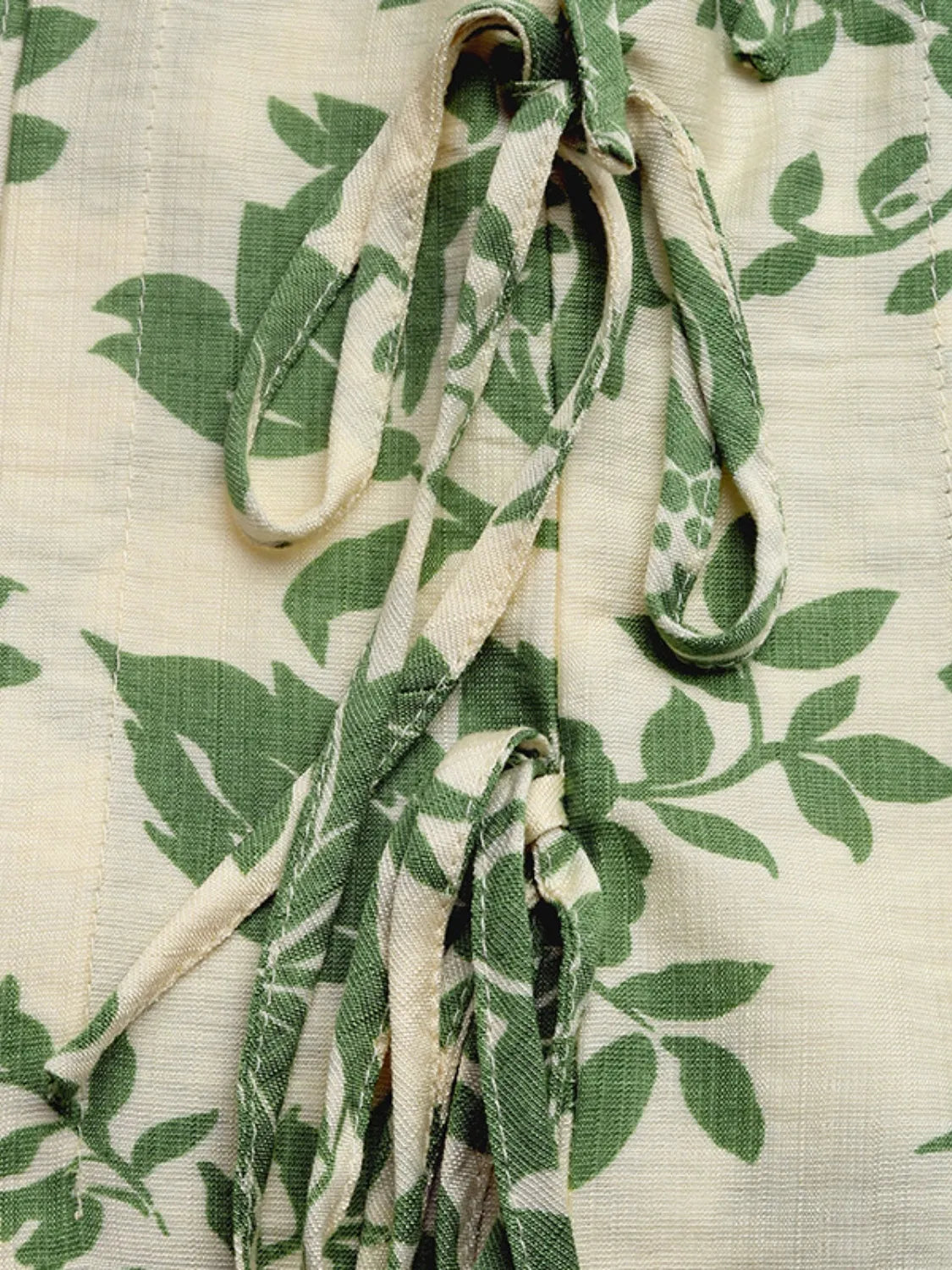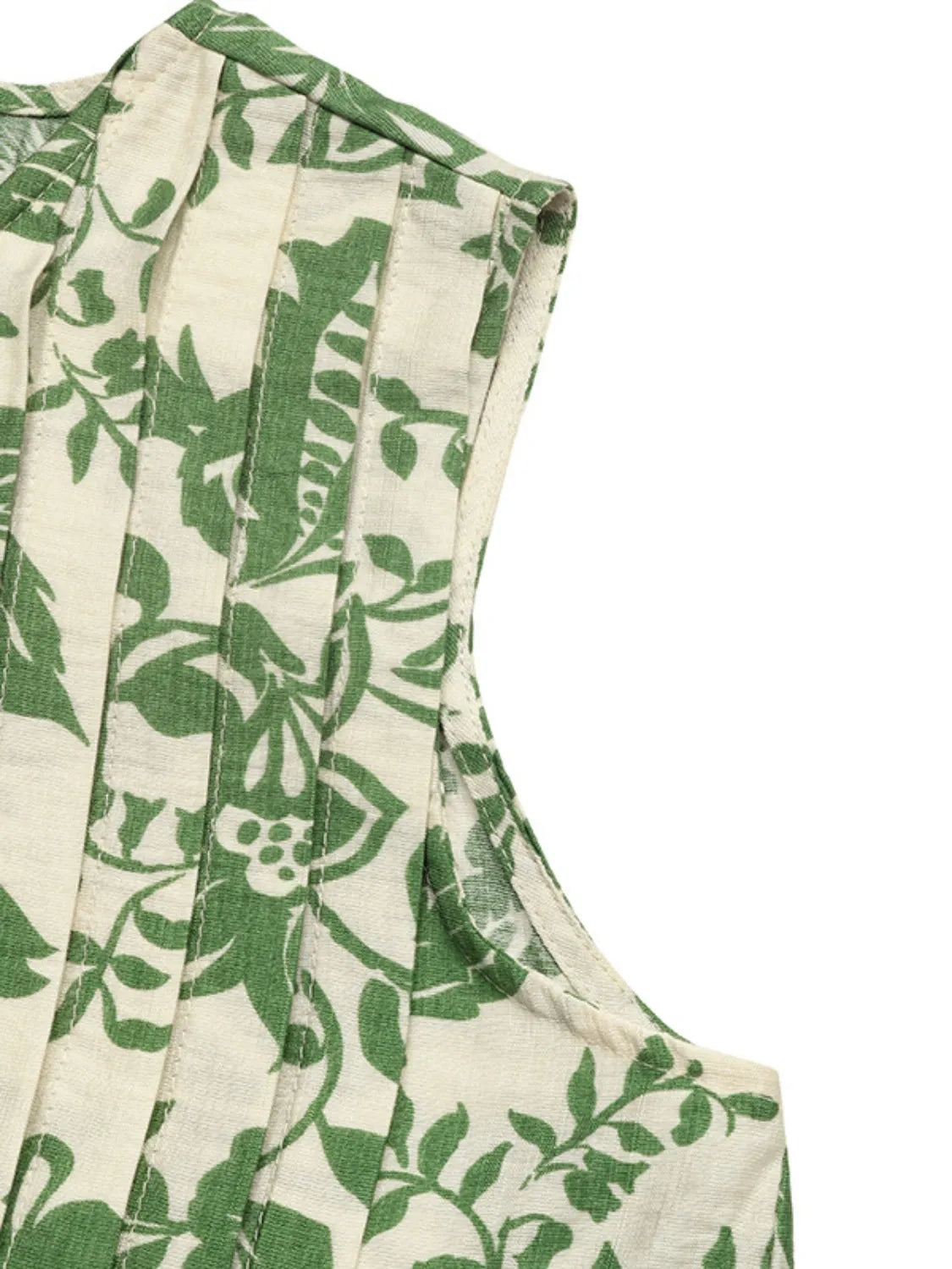 Printed Sleeveless Ruffle Peplum Blouse - Gum Leaf / S