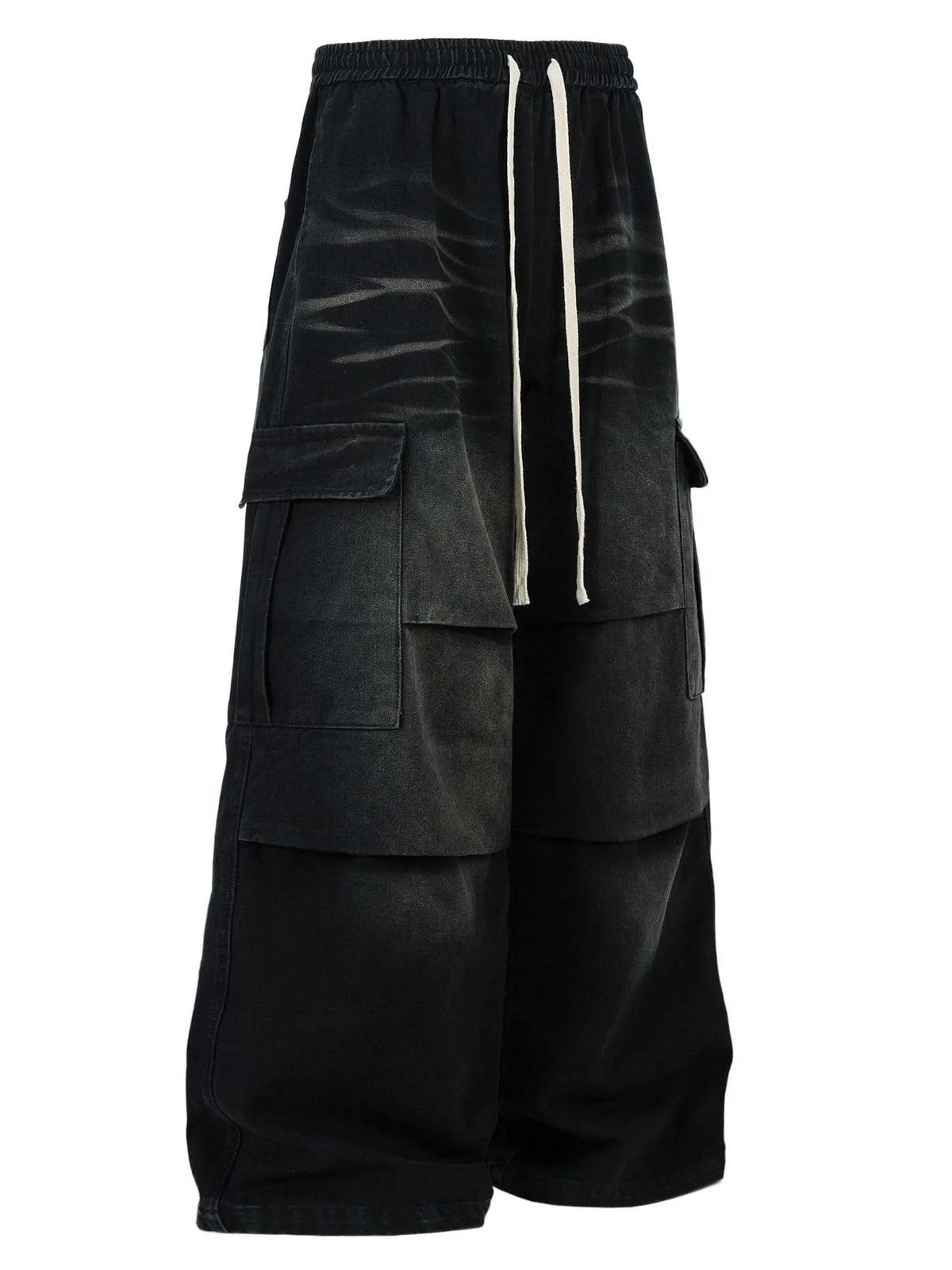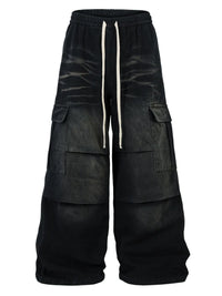 Men's Cargo Wide-Leg Jeans with Drawstring