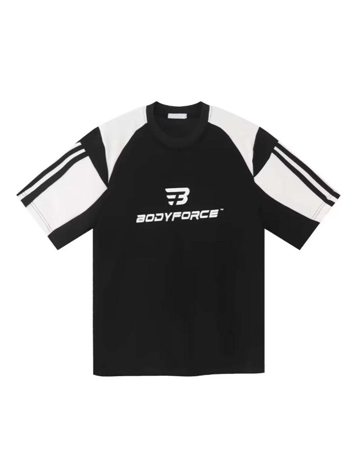 Men's Full Size Contrast Panels Round Neck T-Shirt Plus Size