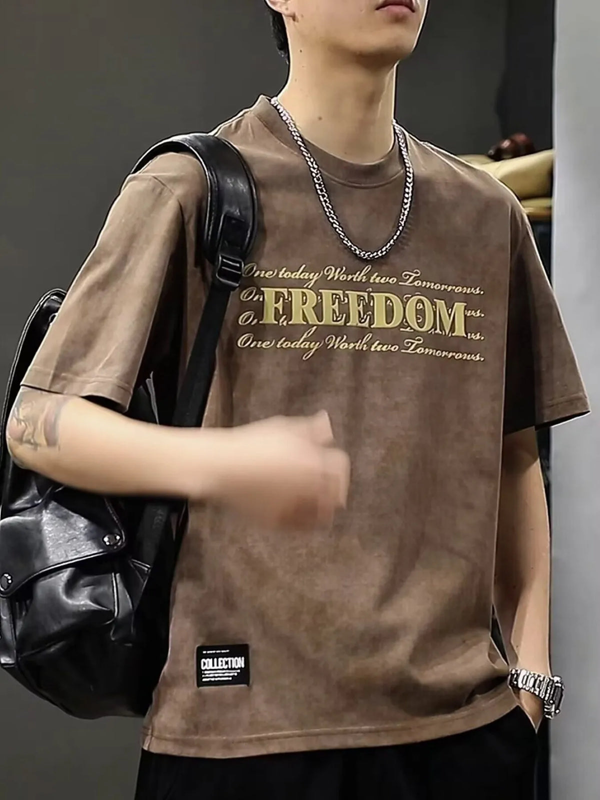 Men's Full Size Freedom Vintage Round Neck T-Shirt Plus Size