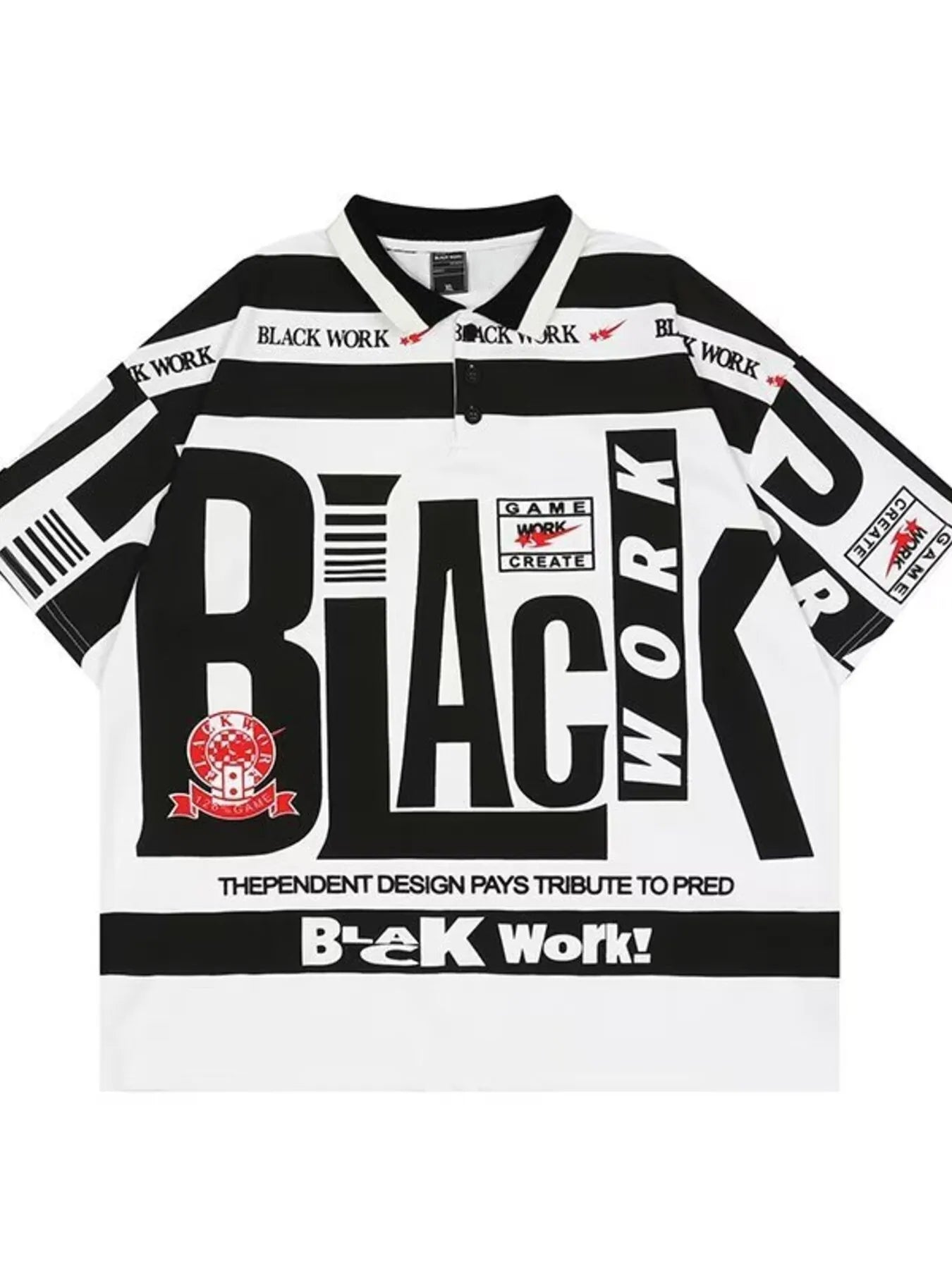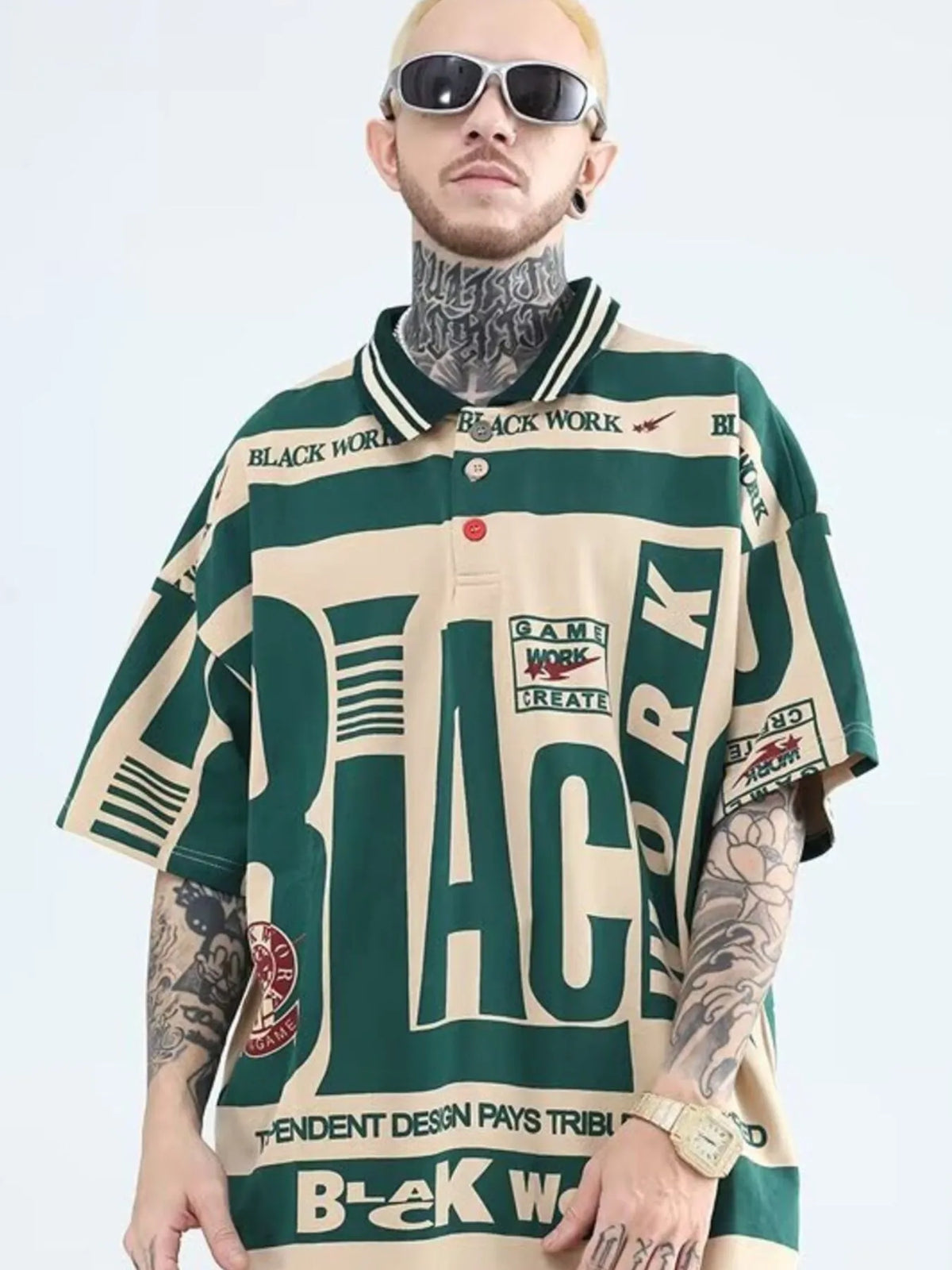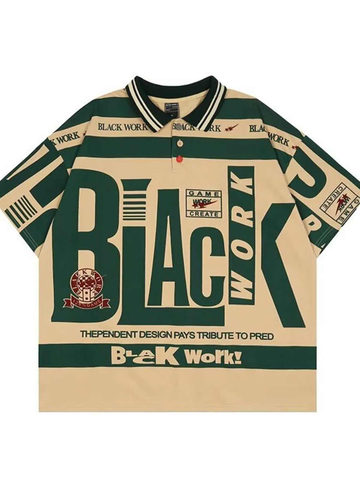 Men's Plus Size Letter Print Half Sleeve Polo Shirt