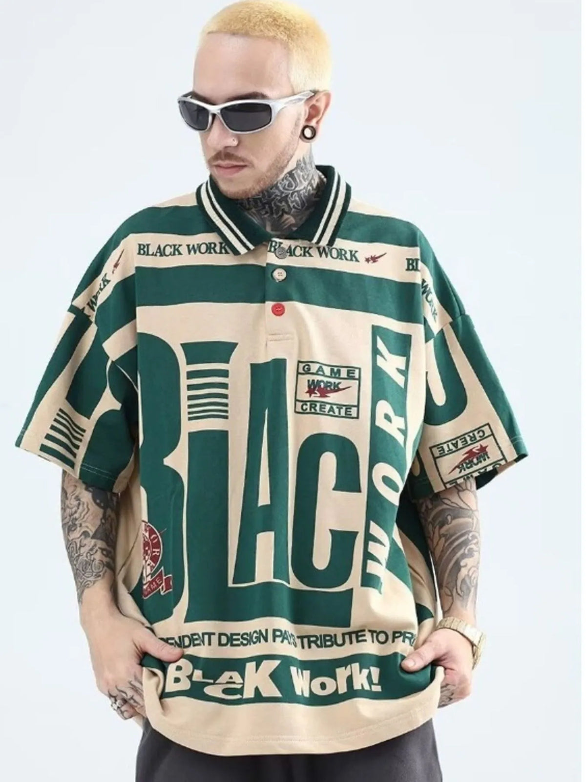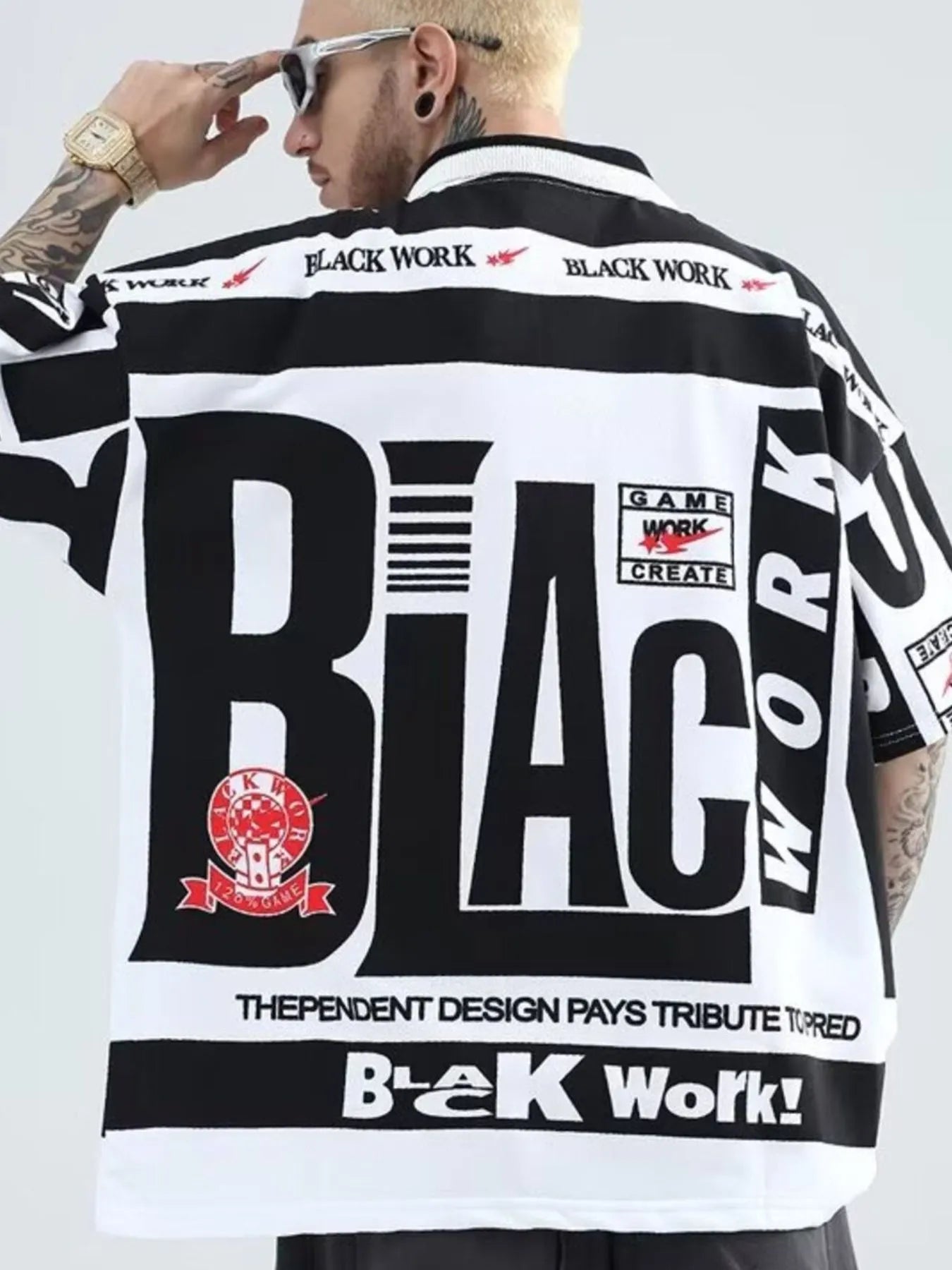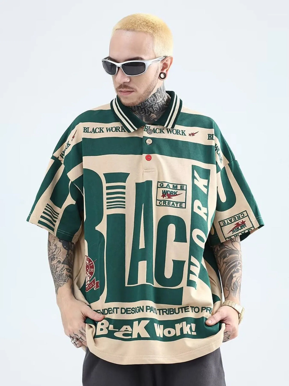 Men's Plus Size Letter Print Half Sleeve Polo Shirt